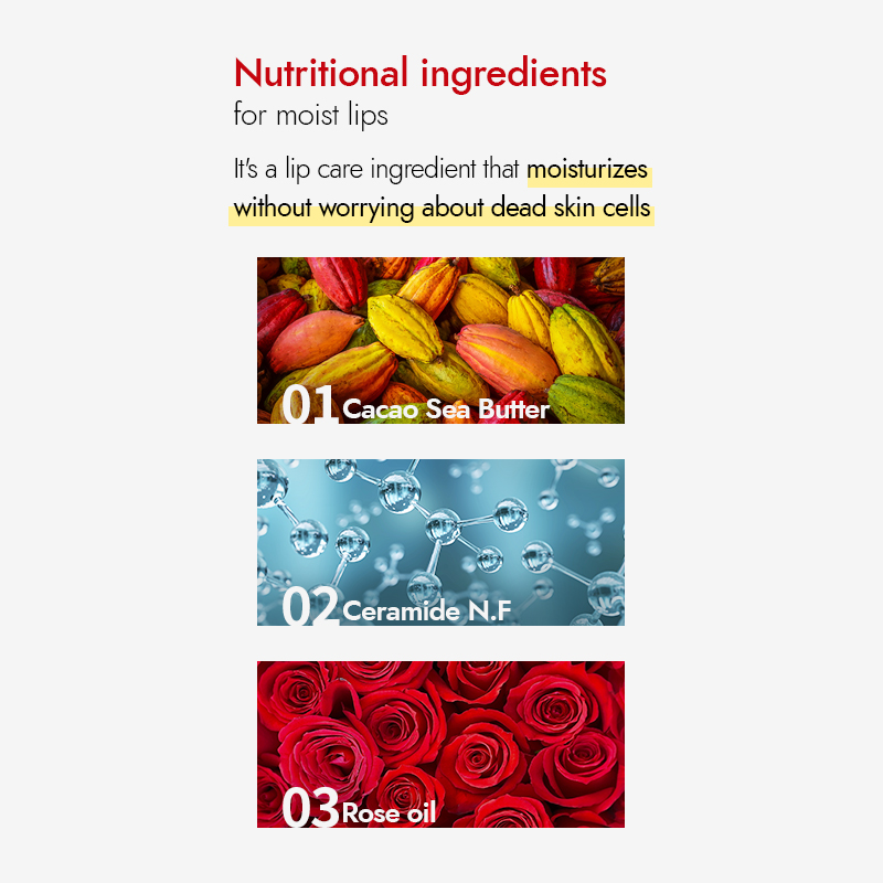 Tint: Isododecane, Diisostearyl Malate, Polyglyceryl-2 Triisostearate, Disteardimonium Hectorite, Methyl Trimethicone, Silica, Titanium Dioxide (CI 77891), Tricalcium Phosphate, Silica Silylate, Trimethylsiloxysilicate, Talc, Kaolin, Octyldodecanol, Polybutene, Propylene Carbonate, Red 6 (CI 15850), Synthetic Wax, Yellow 5 Lake (CI 19140), Rose Flower Oil, Theobroma Cacao (Cocoa) Seed Butter, Petrolatum, Sorbitan Isostearate, VP/Hexadecene Copolymer, Polyglyceryl-2 Diisostearate, Triethoxycaprylylsilane, Tocopheryl Acetate, Vinyl Dimethicone/Methicone Silsesquioxane Crosspolymer, Water, Ceramide NP, Dehydroacetic Acid, Fragrance, Red 7 Lake (CI 15850), Iron Oxides (CI 77499), Iron Oxides (CI 77491), Iron Oxides (CI 77492), Red 22 Lake (CI 45380)