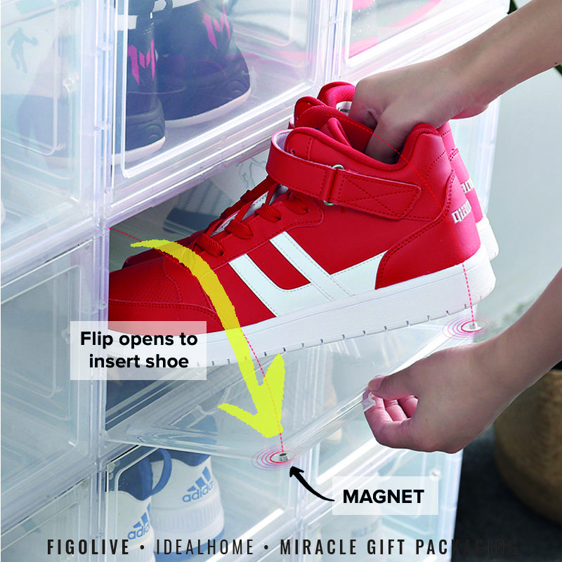 Premium Big Capacity Stackable Large Thick Transparent Magnetic Shoe Box Sneaker Shoes Storage AJ Display Boxes Shoebox Christmas Gift Birthday Present Storage Multipurpose Usage