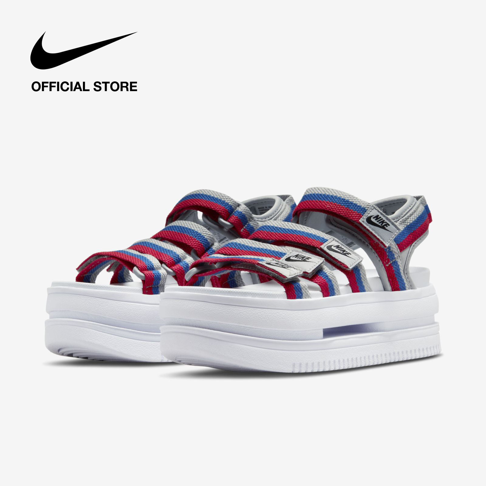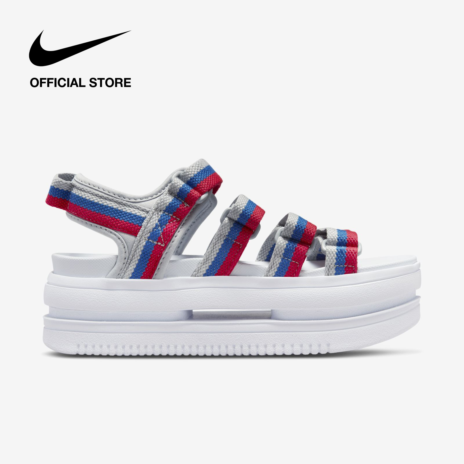Lifted. Classic hoops detailing. Strappy but easy to wear. Check all the boxes in the Nike Icon Classic. Its big, bold midsole wows with comfort. The outsole pattern delivers iconic Air Force 1 vibes, whjle the multiple hook-and-loop straps add a fearless look. Get ready to shine with this new voice in sandal style.
