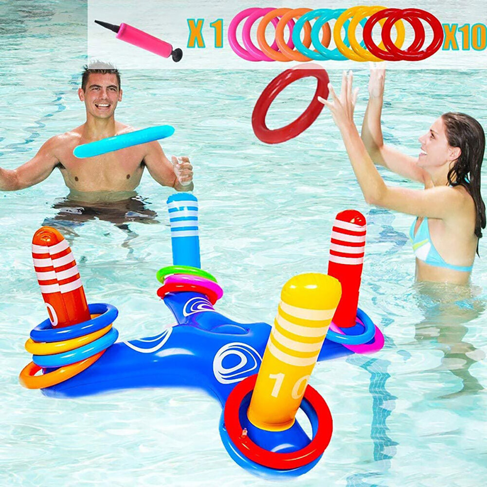 3. 100% Satisfied: The inflatable pool ring throw game is made of the thickest material, durable and reusable. Any problem, please email us and we will try our best to solve it.