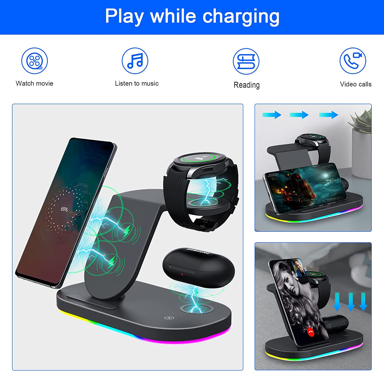 LuckySambo 3 in 1 Android Wireless Charger for Samsung Devices, Wireless Charging Station for Samsung Galaxy S22/S22+/S22 Ultra/S21/S20/S10/Note20/Note10, Galaxy Watch 4/3,Galaxy Buds/Pro/+/Live Black
