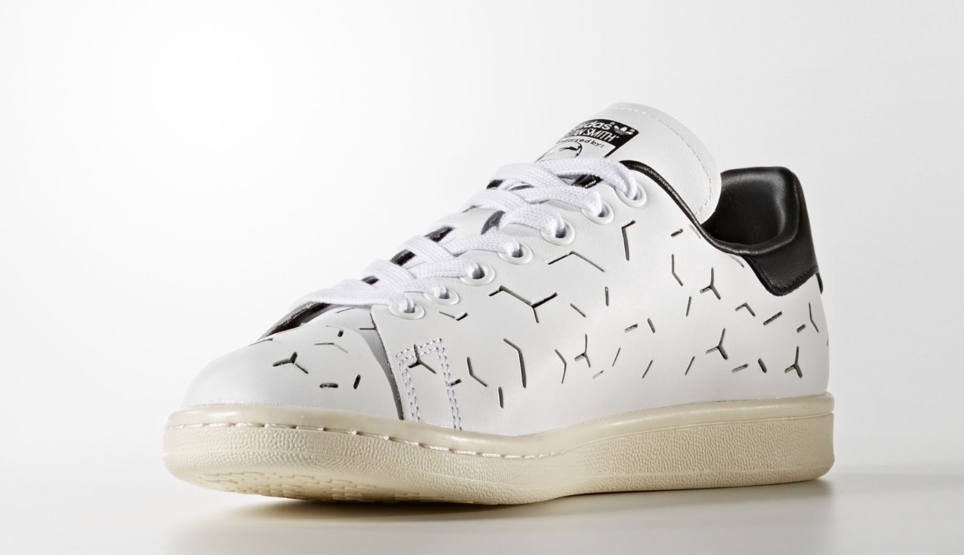 With a modern aesthetic inspired by Scandinavian design, these women's Stan Smith shoes are crafted in leather and feature a geometric laser-cut graphic. Lined with soft leather, they feature a contrast heel tab. A bona fide court champion, the Stan Smith shoe got its name from the biggest tennis star of the '70s. Beloved across the globe, it has a style game that's only improving with age. With a modern aesthetic inspired by Scandinavian design, these women's Stan Smith shoes are crafted in leather and feature a crisp laser-cut geometric graphic. Lined with soft leather, they feature a contrast heel tab and rubber cupsole. Debossed foil tongue label Synthetic leather lining. Enjoy the comfort and performance of OrthoLite® sockliner. Vintage leather heel patch with debossed Trefoil logo. Rubber cupsole