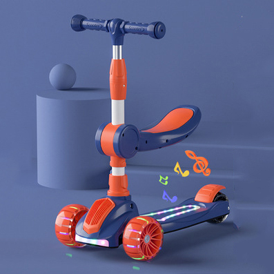 OneTwoFit Kids Adjustable Light Scooter With Seat Music Colored Children Scooters