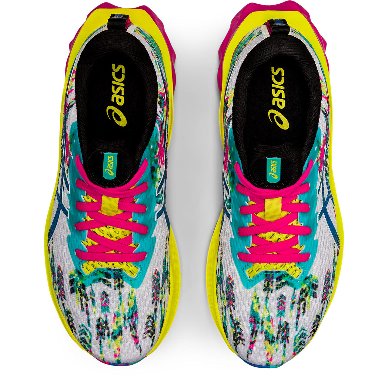 This colorway is inspired by the heritage of our traditionally vibrant running shoes. It features bright tones and energized graphics that are complemented with various coastal caricatures.