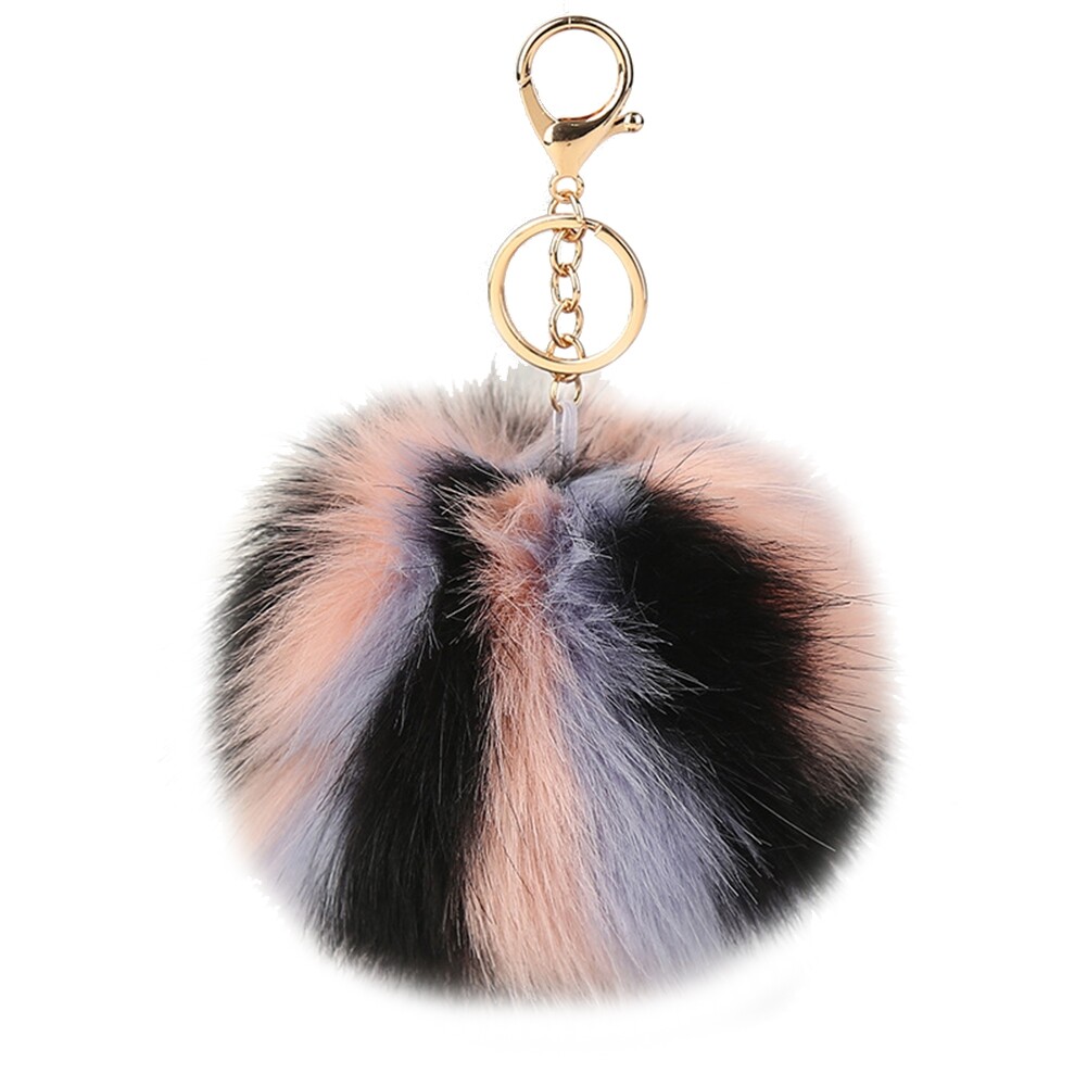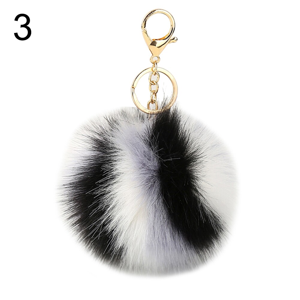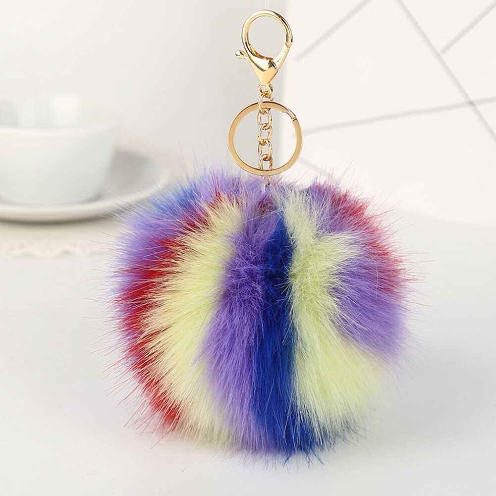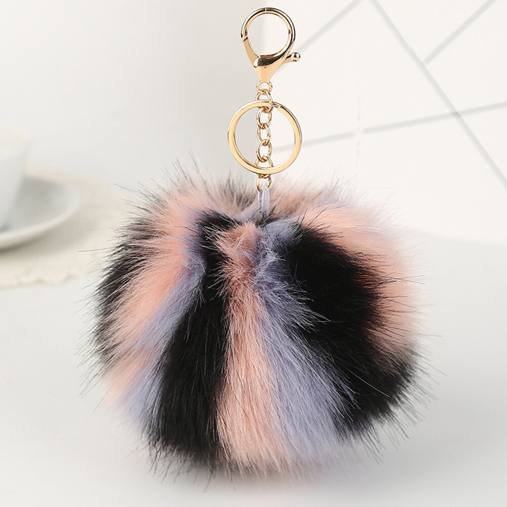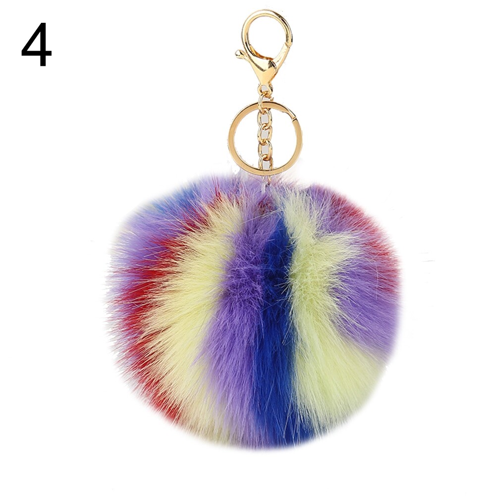 Colorful Faux Fur Pompom Pendant Keychain Key Ring Women Car Handbag Ornament
