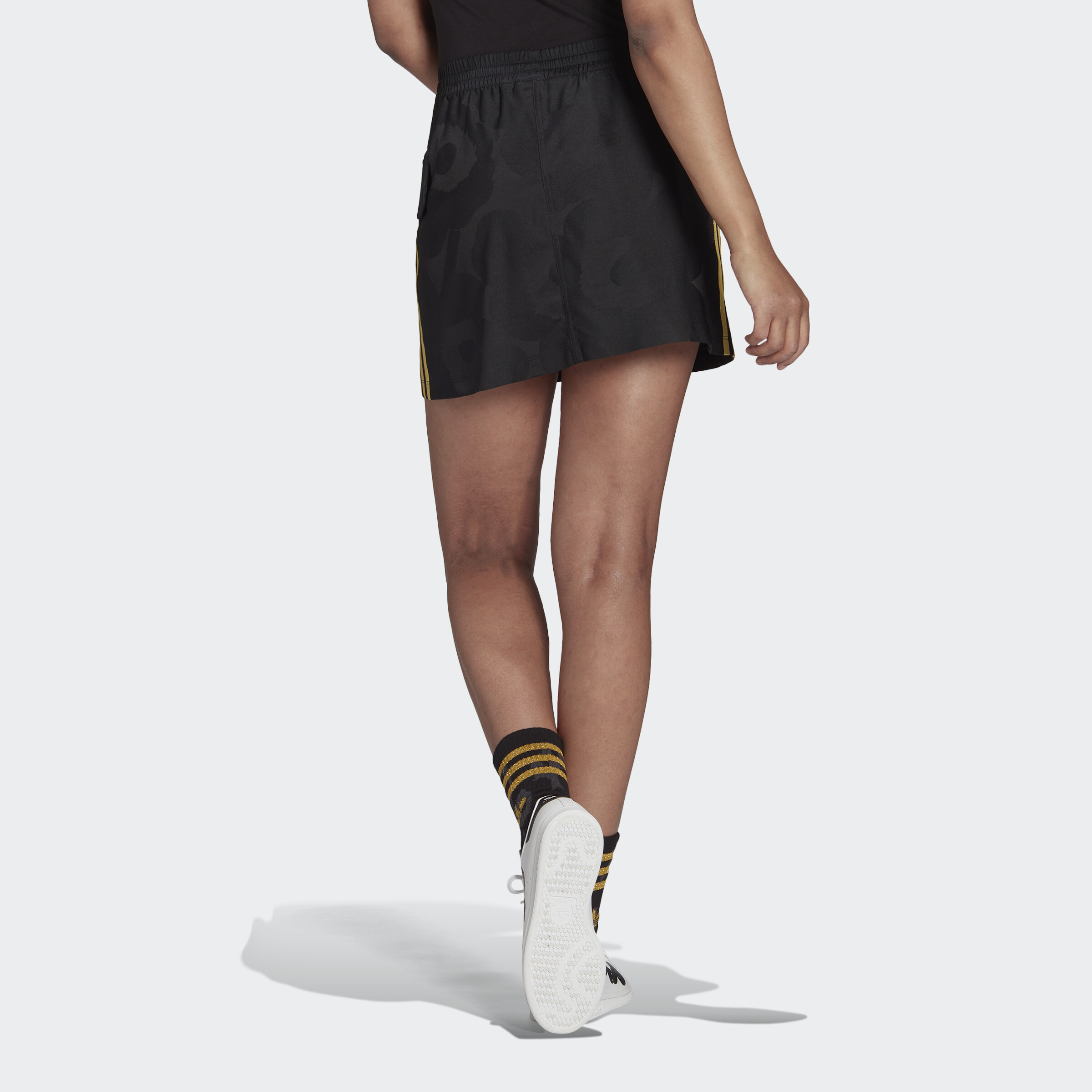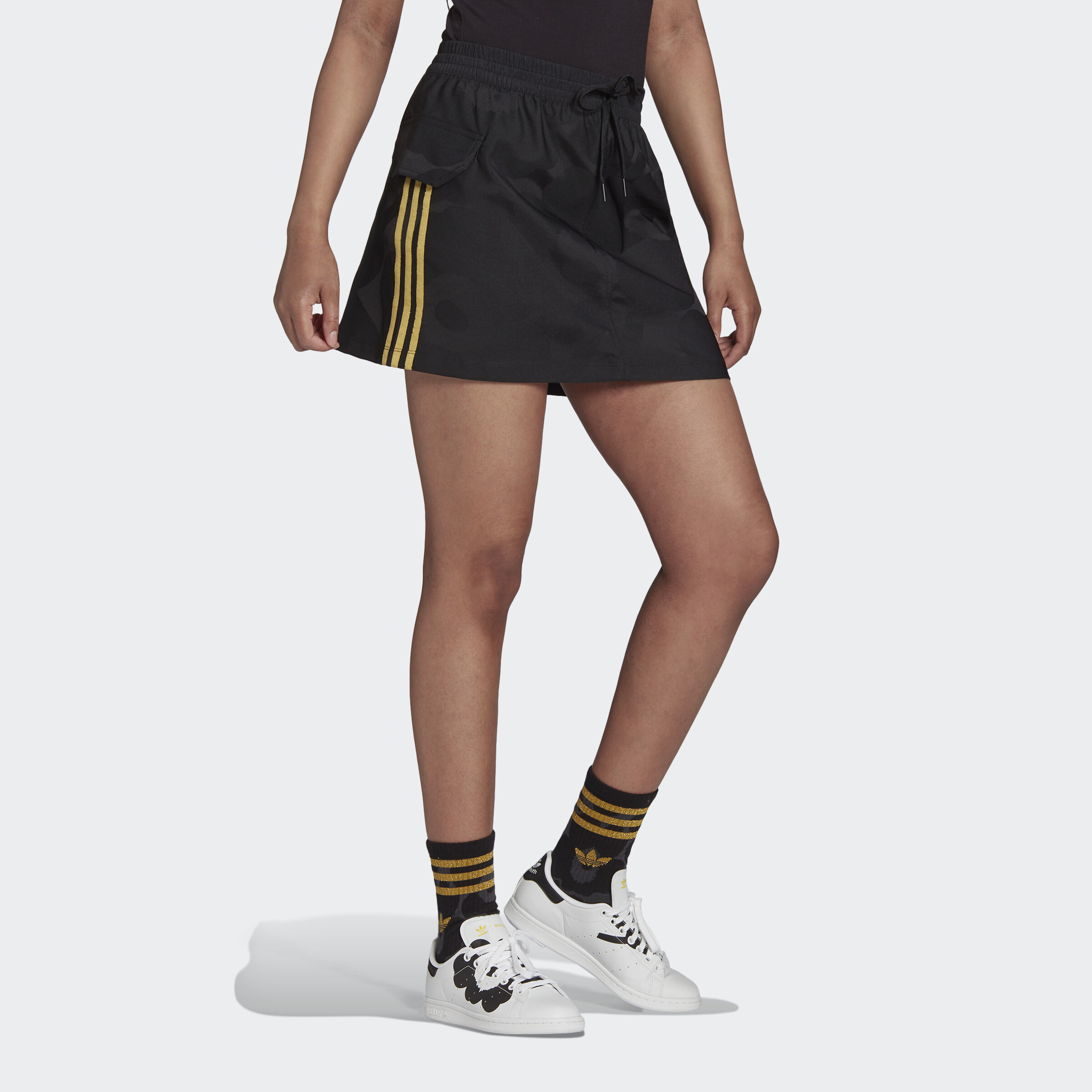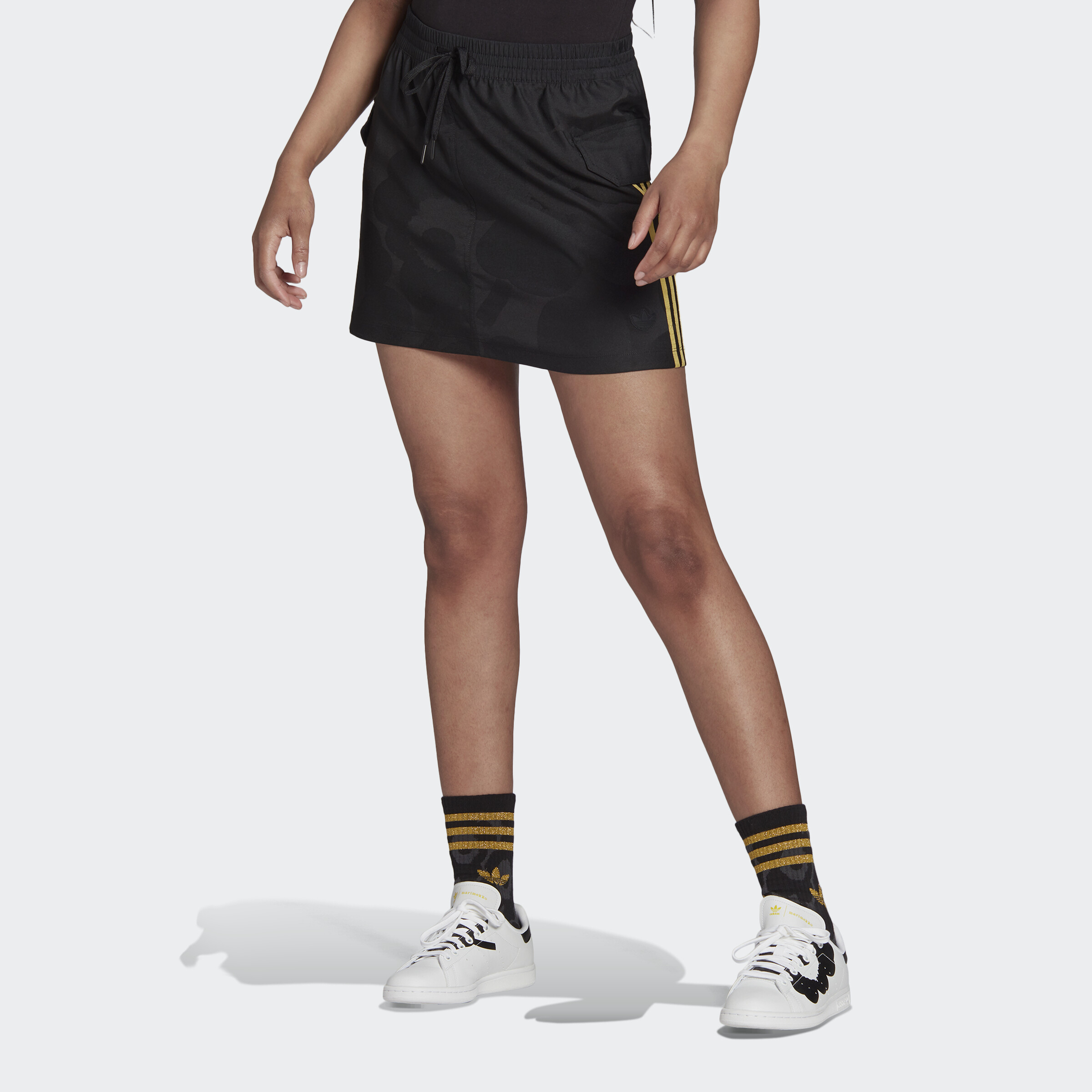 adidas ORIGINALS Marimekko Mini Cargo Skirt with Golden Stripes and Cargo Pockets Women Black H20195