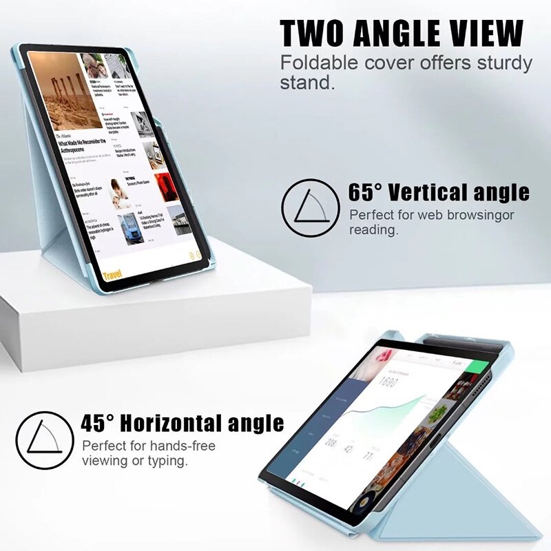 2.【Adjustable Angles】- This case allows you to adjust the tablet to multiple angles securely.