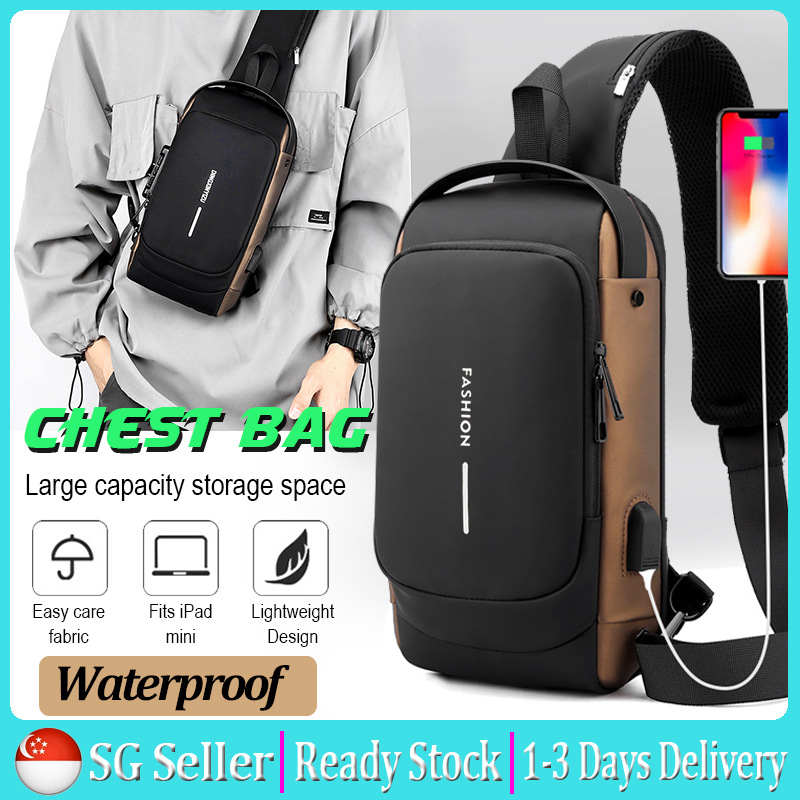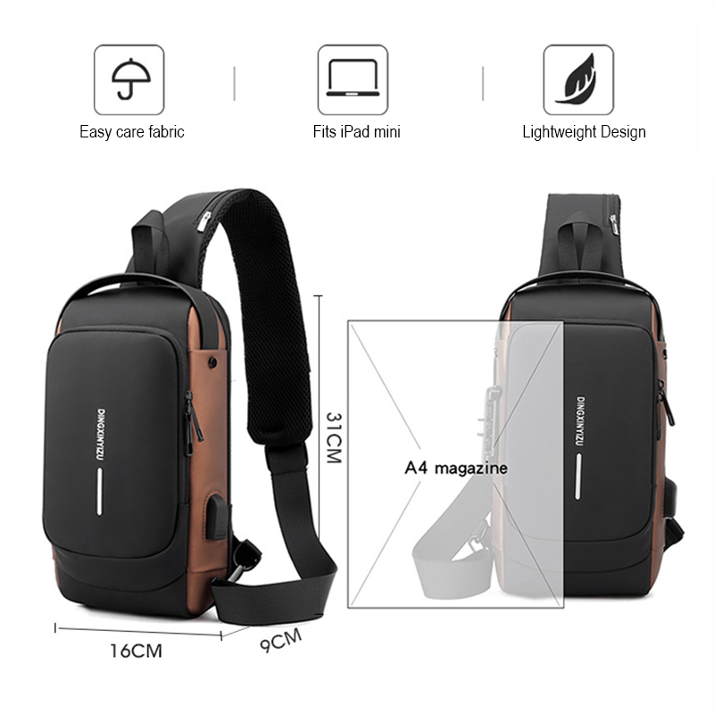 2022 New Leather Men's Chest Bag Crossbody Bag Shoulder Bag with USB Charging Port Large Capacity Multifunctional Anti-theft Password Bag For Sports Car Cool Crossbody Bag