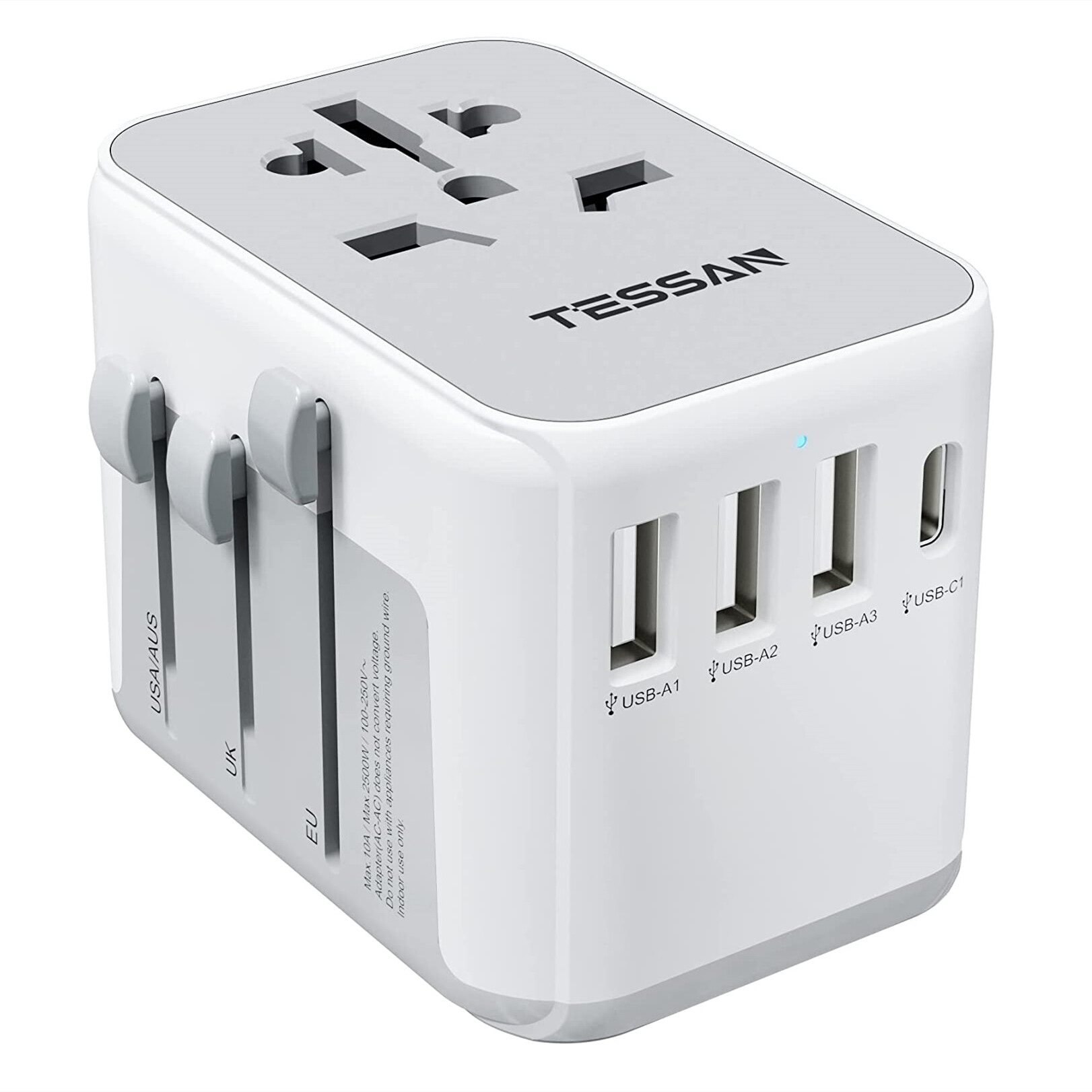 Universal Adapter Plug PH/US/AU/EU Adaptor Socket Travel Charger with 3 USB Ports+(1 USB C),TESSAN International Travel Adapter Universal Adaptor All in One Worldwide EU Adaptor Universal Socket for E