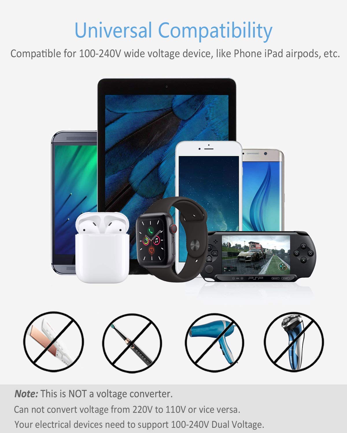 • Portable and Safety: Compact and lightweight design to fit into luggage and briefcases; It has no surge protection, no cords, can be taken aboard cruise ship. The worldwide adapter with double fuse (fuse standard: 250V 10A), integrated security shutters, guard your travel security.