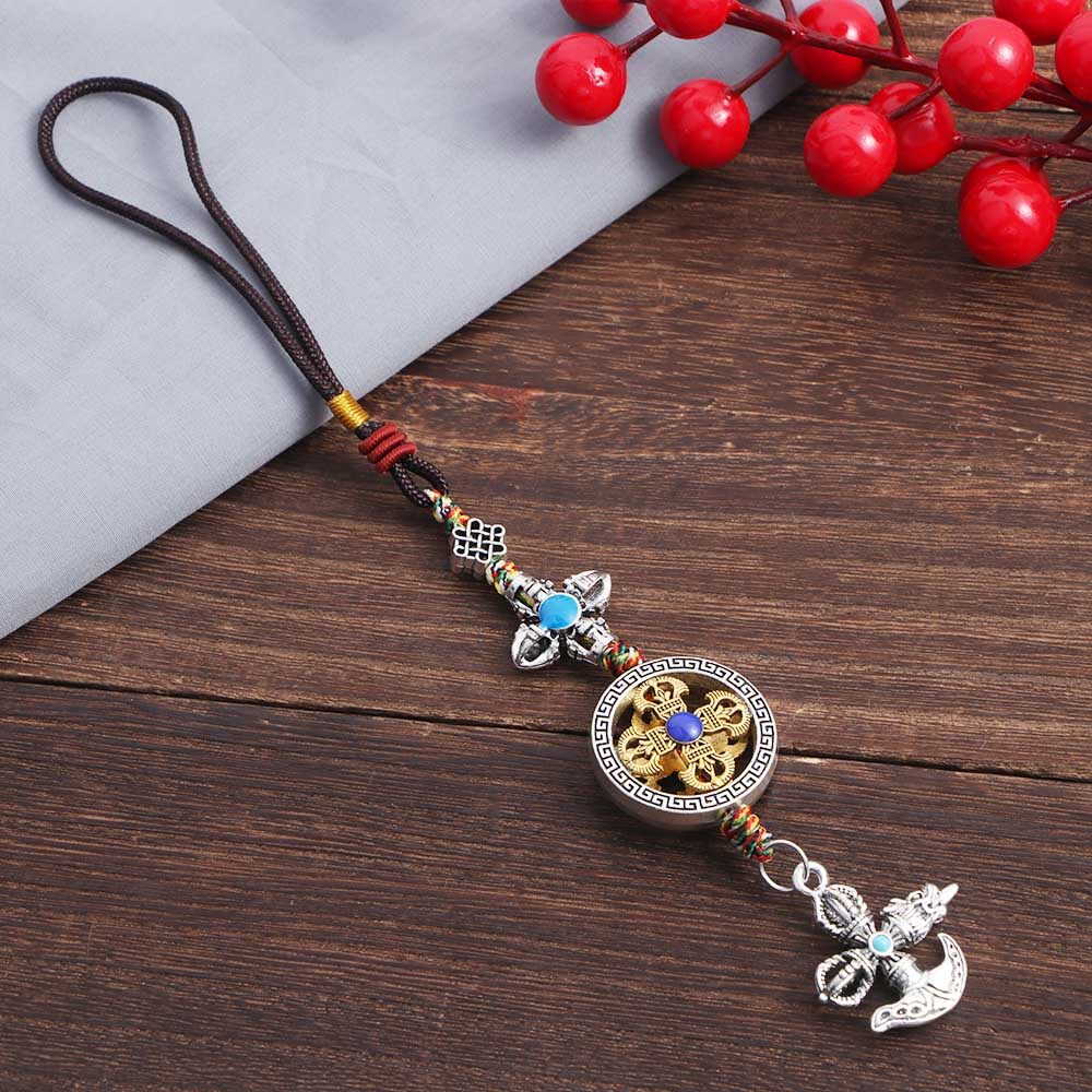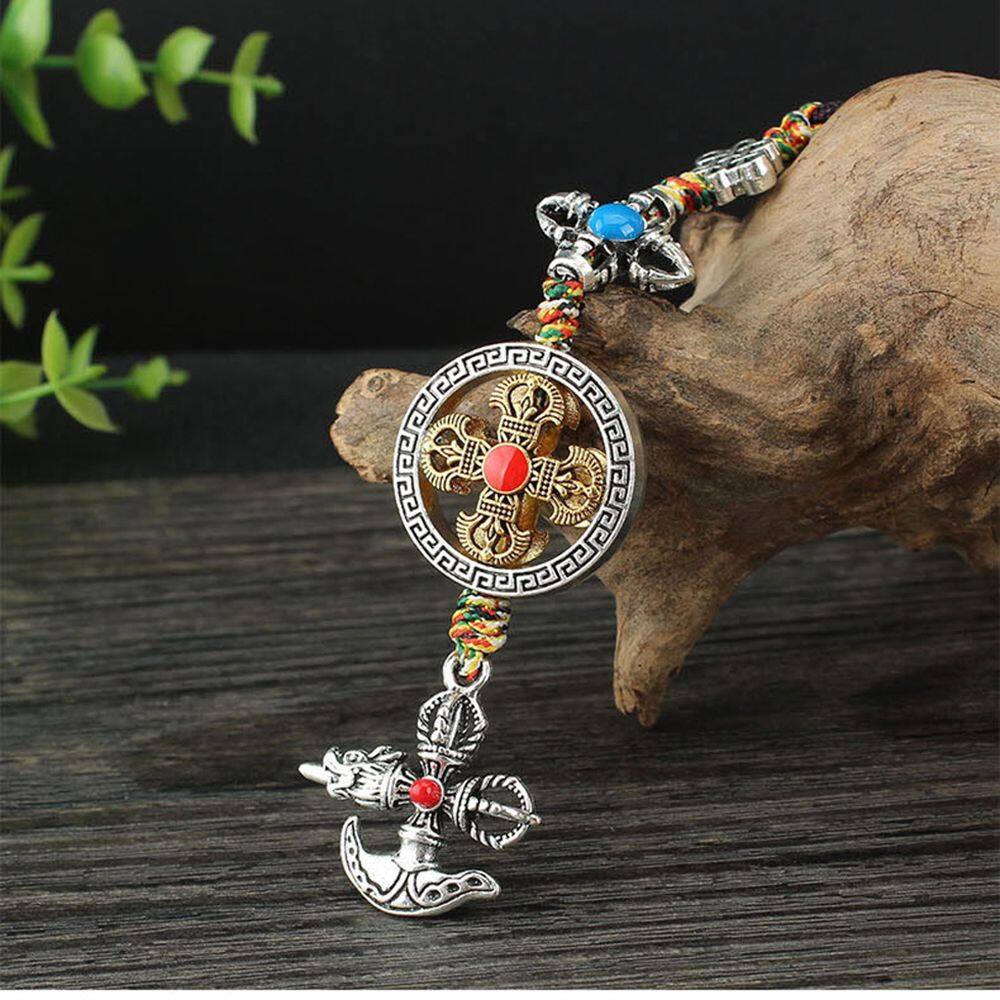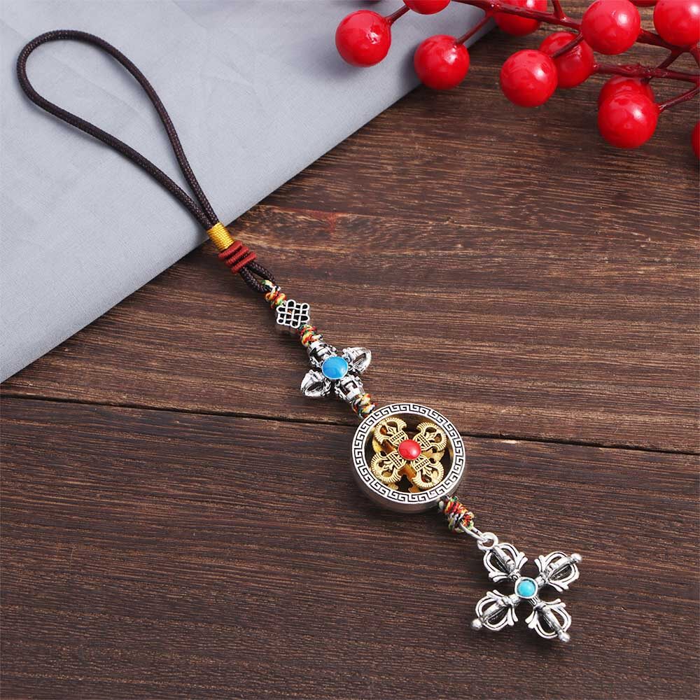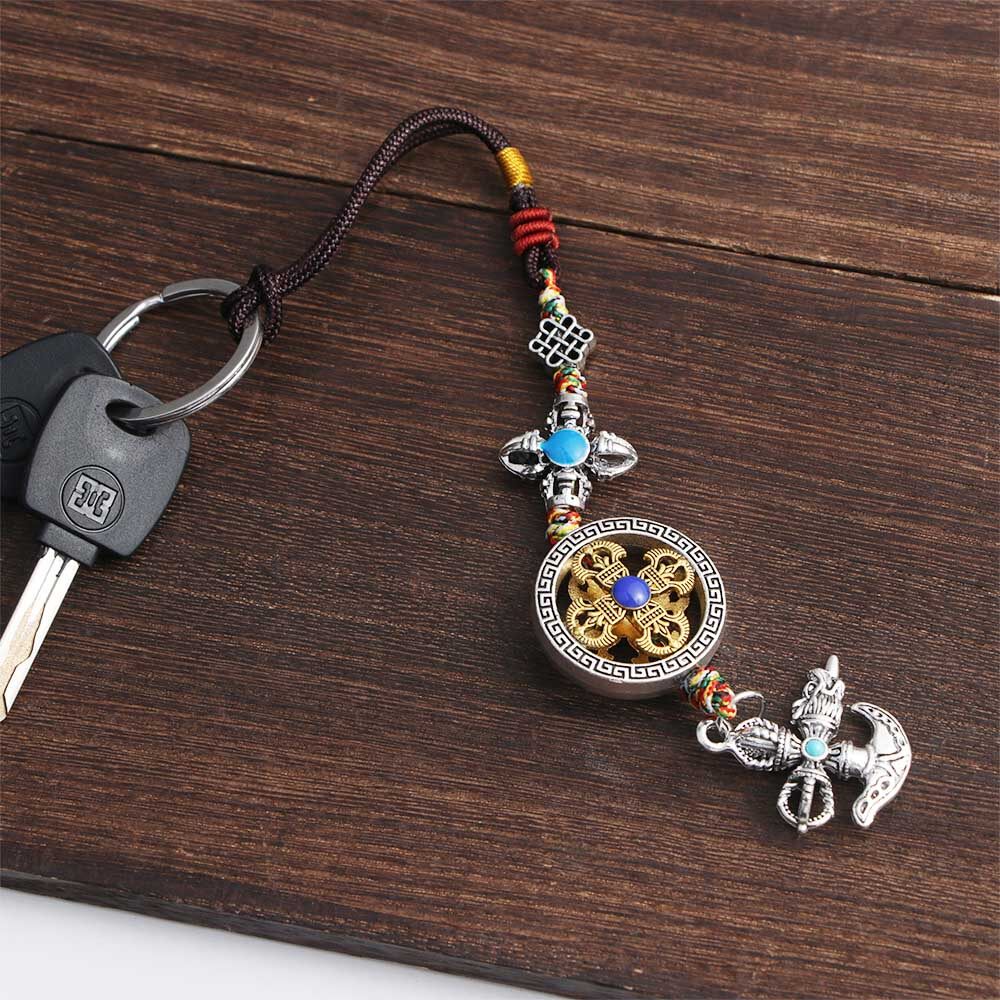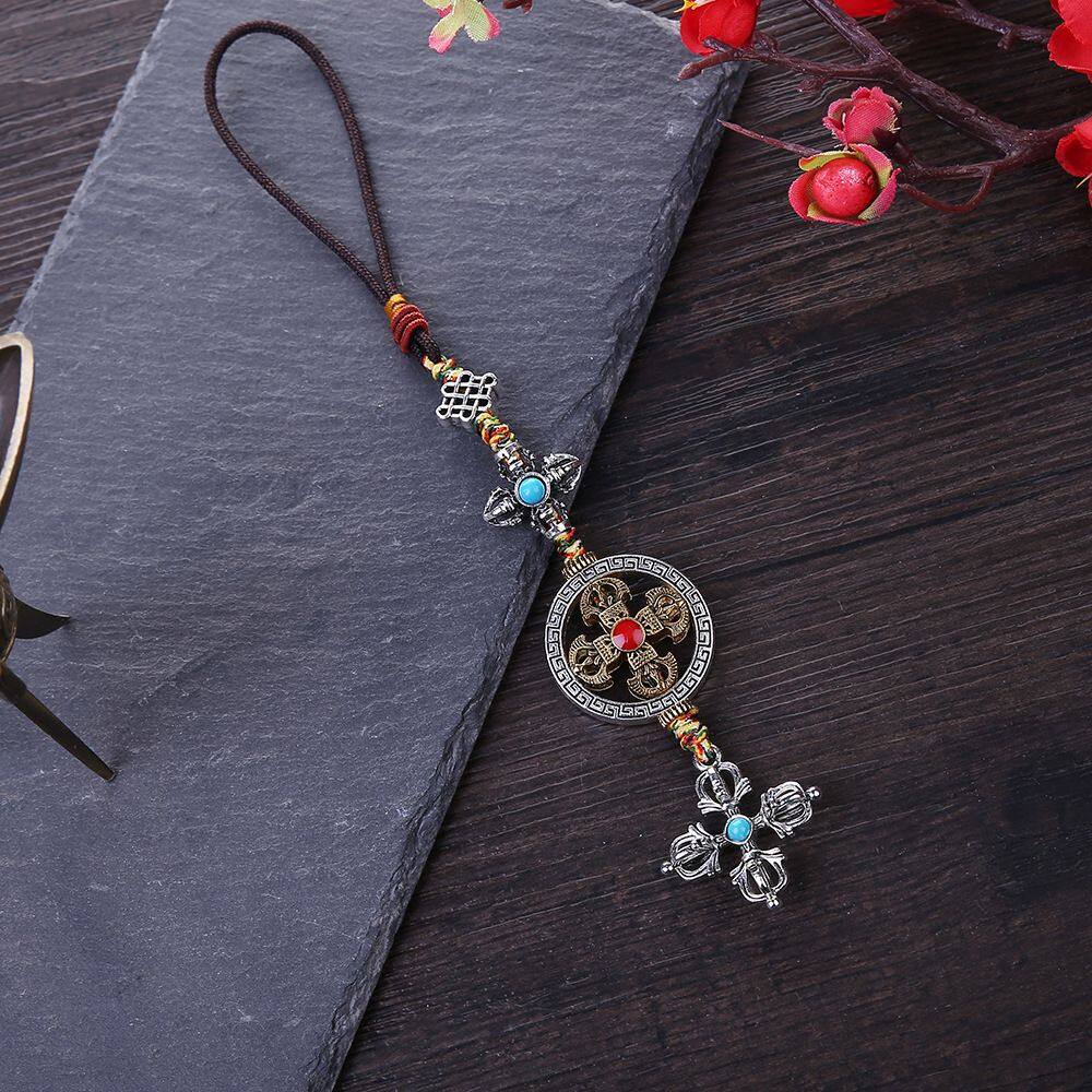 BIRONG Vintage Couple Gifts Braied Rope Dispelling Evil Car Key Chain DIY Ornaments Keyring Pendant Mobile Phone Lanyard Cross Vajra Pestle Tag Pentant Car Pendant Tibetan Tantric Auspicious Knot Cros