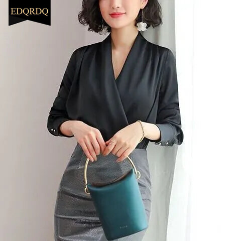 EDQRDQ Women's Casual Chiffon Tops V Neck Long Sleeve Elegant Shirts Wrap Blouses