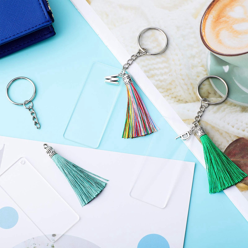 146 Pcs Acrylic Keychain Blank Set,Rectangle Discs Ornaments, Colorful Tassels Decorations for DIY Projects and Crafts