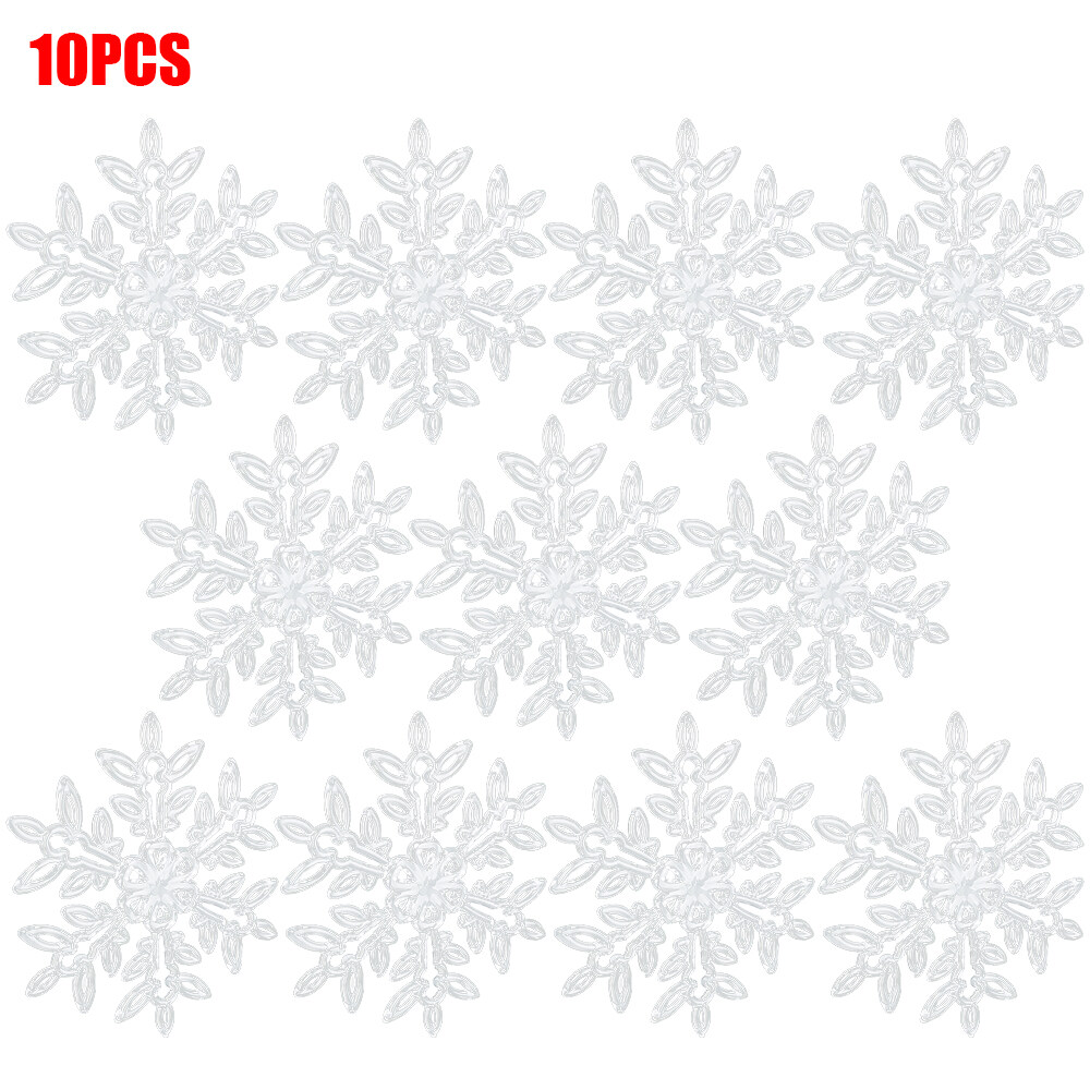 10pcs Christmas Transparent Acrylic Crystal Snowflake Christmas Tree Pendant Decoration New Year Decor Ornament