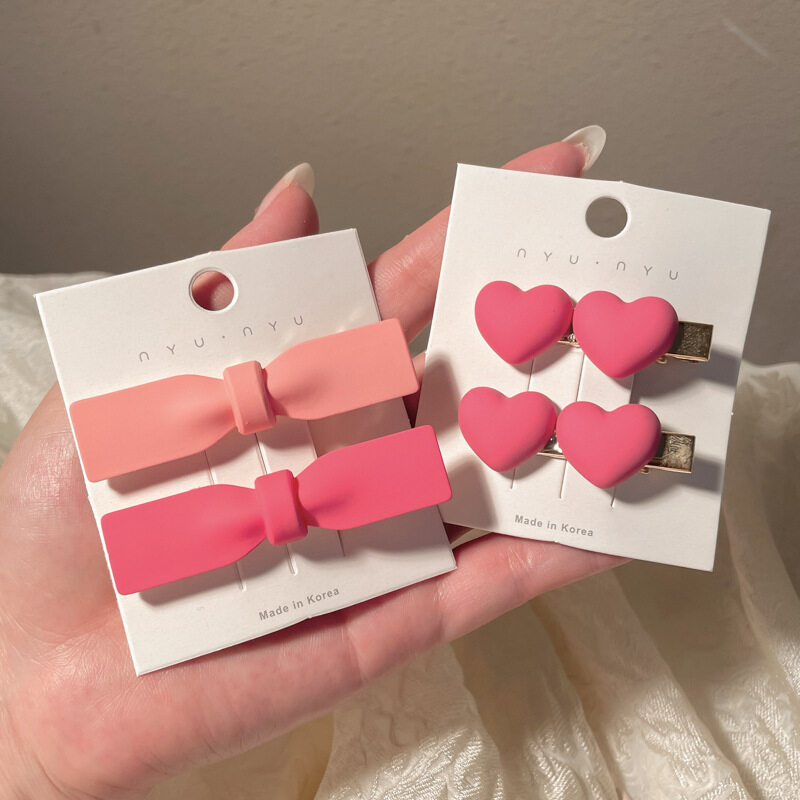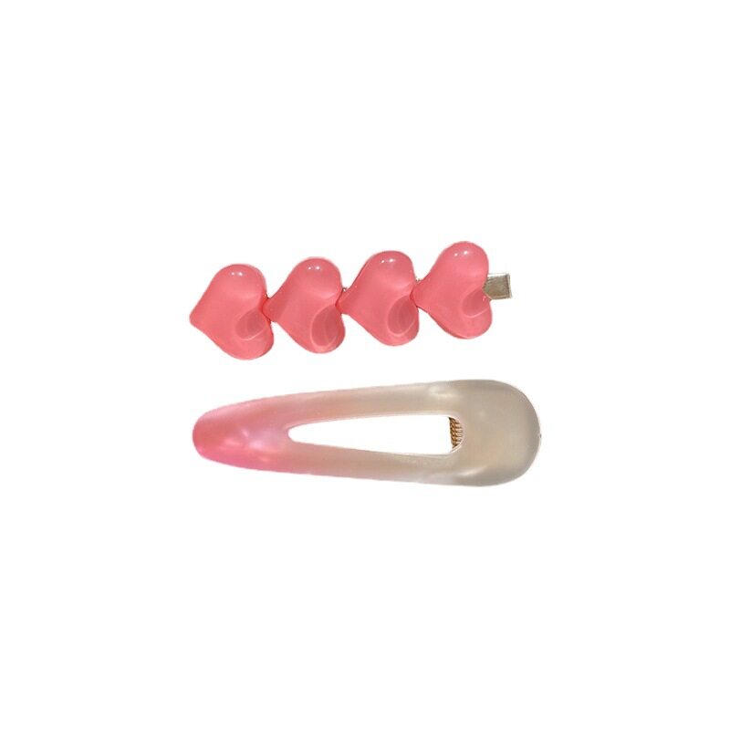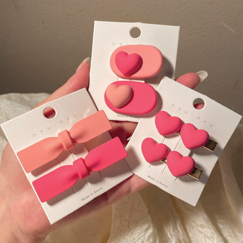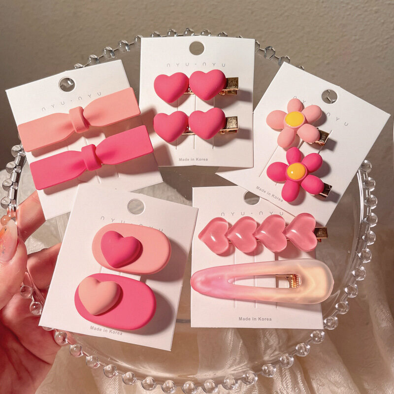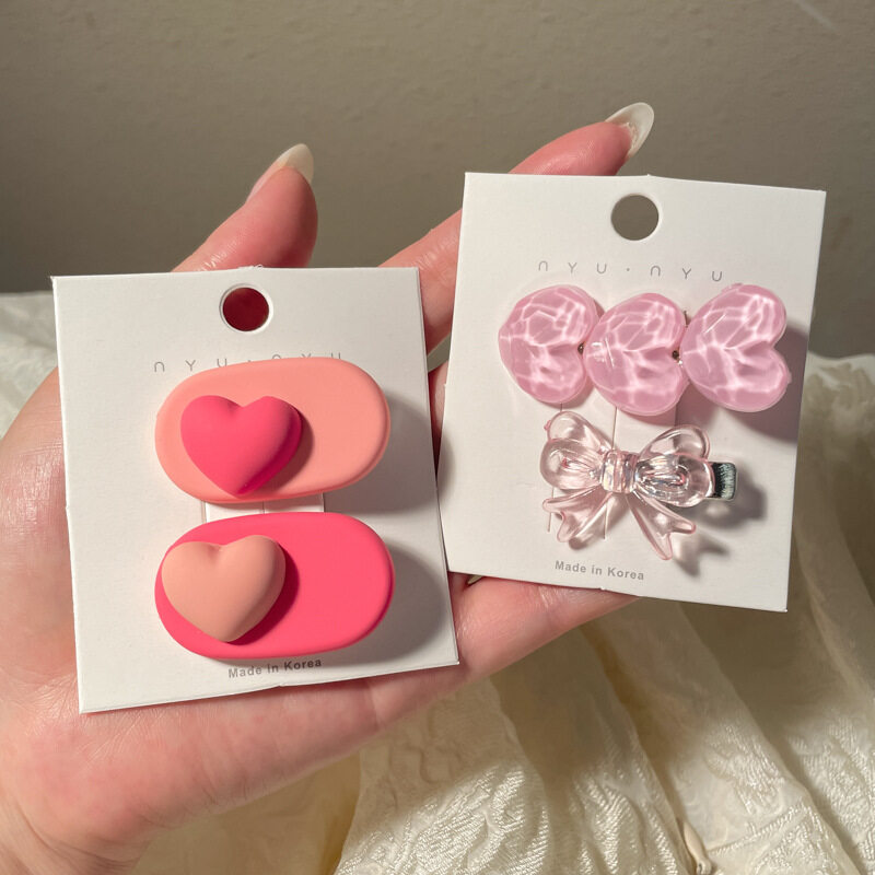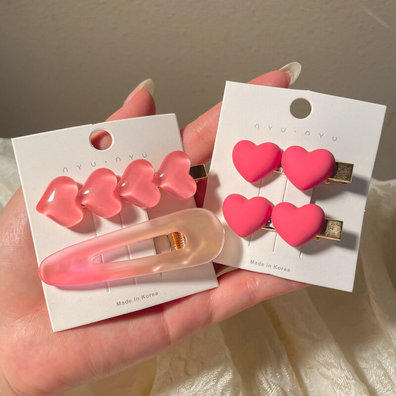 FINETOO Hot Sale New Korean Heart-shaped Pink Hair Clip Set for Women's Decoration