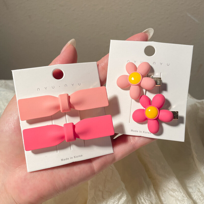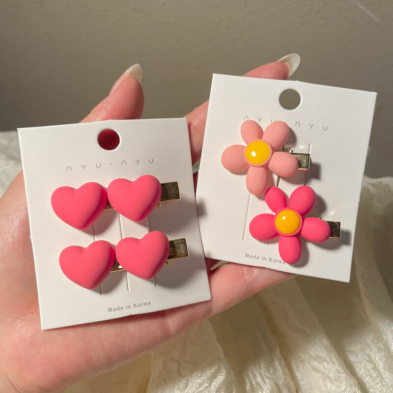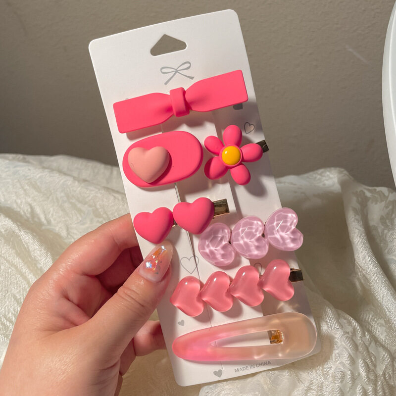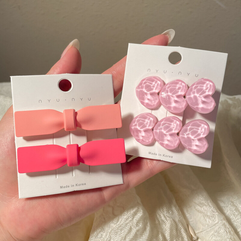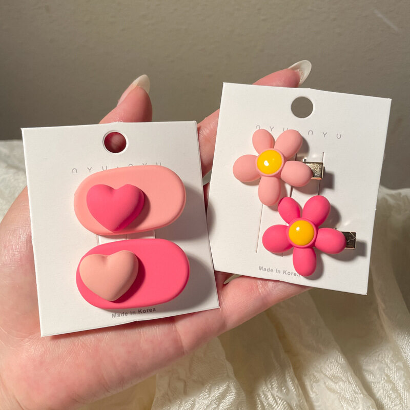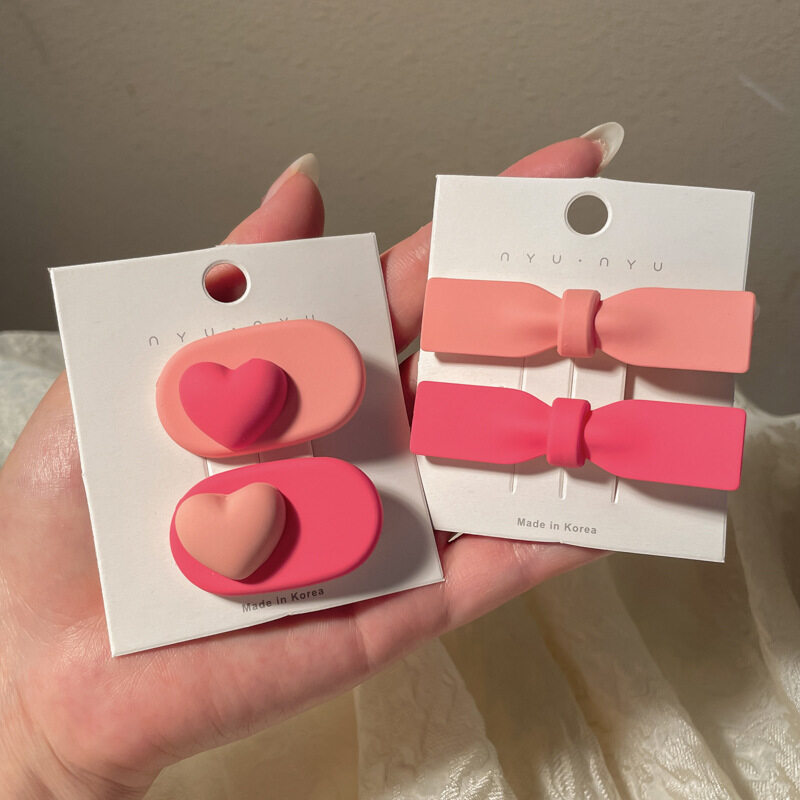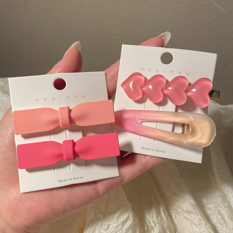FINETOO Hot Sale New Korean Heart-shaped Pink Hair Clip Set for Women's Decoration