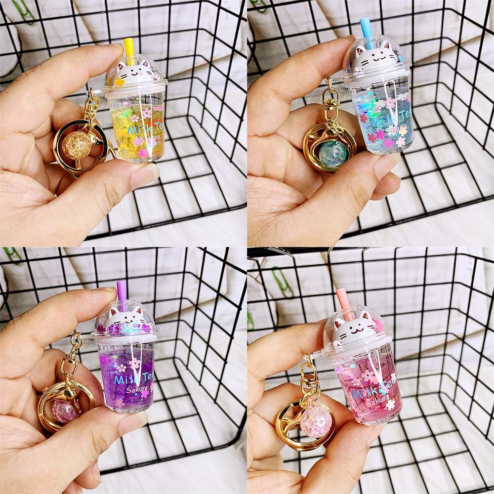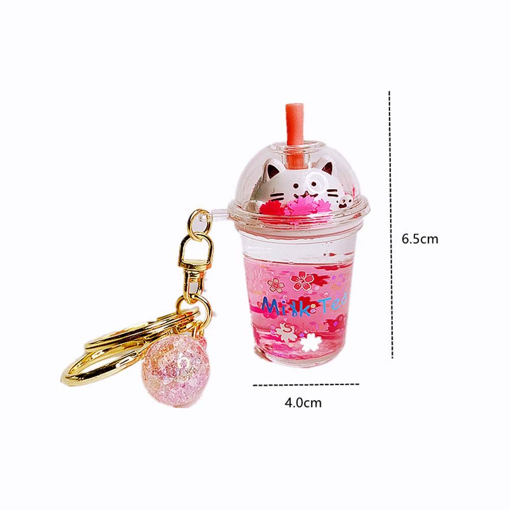 IIWEIKE Gifts Mini Cartoon Ornaments Bag Pendant Women Kids Key Holder Sakura cat Key Ring Car Key Chain Milk Tea Bottle Keychain