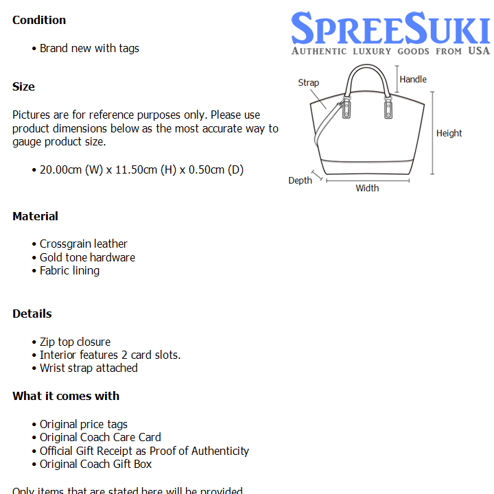 All our products are 100% authentic and purchased from Coach stores in USA. We are a reputable registered business in Singapore and it is illegal to sell counterfeit goods in Singapore. This product also comes with a gift receipt which is printed by the Coach store that we purchased the item from. It states the item that we purchased and the Coach store that it was purchased from, proving the authenticity of the item. Buy with confidence.