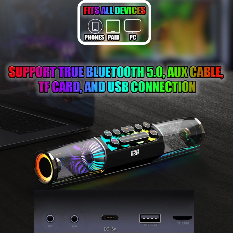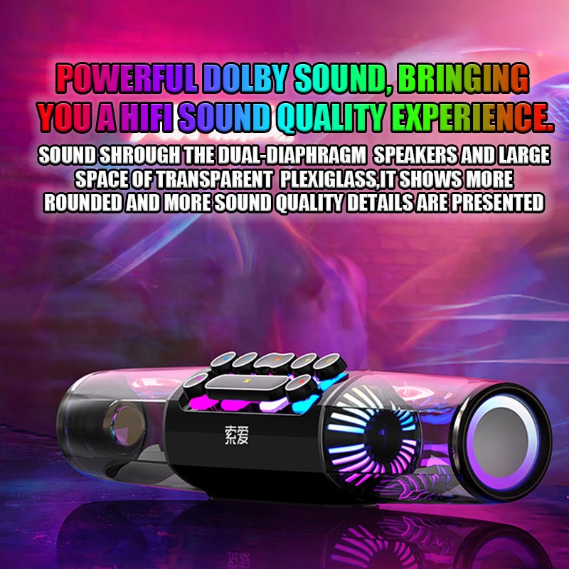 Welcome! 【HOT Selling】 【SG Ready Stock】 【Ship out within 24 hours】 ●●●●●●●●●●●●● ⬇️????? ??? ?????⬇️ ????? is a brand established in China in 1996. It is currently based on a series of multimedia products, focusing on the design, development, manufacturing and after-sales of Bluetooth headsets, Bluetooth audio, karaoke entertainment equipment, mobile phones and amplifiers. With nearly 1,000 employees, the annual sales volume reaches billions of RMB. ●●●●●●●●●●●●● ⬇️??????? ???????????⬇️ ⭐Multiple Connection Methods ⭐Can use true bluetooth 5.0, aux cable, tf card and usb connection, suitable for all devices! ⭐HIFI Sound Quality ⭐With dual diaphragms and dual speakers, music can be presented more fully through the large space of plexiglass, bringing you an extraordinary hifi sound quality experience. ⭐Fantastic LED Ambient Light ⭐The mechanical buttons have 13 modes of lighting, and the speaker body has 16 lighting modes to choose from! ⭐Come and enjoy your exclusive speakers! ⭐E-sports Level Mechanical Button Design ⭐Design the key mechanical button of e-sports level, with an excellent feel. And can be disassembled for easy cleaning. ⭐Unique cool design, make your speakers extraordinary. ⭐60% Speaker Body Plexiglass ⭐The use of plexiglass design not only makes your speakers look different, but more importantly is the large space cavity can make the sound quality more perfect! ⭐HD Call Function ⭐When the call comes,the speaker automatically pauses the music and turns on the high-definition call function , and cooperates with the ENC ambient noise cancellation function to make your calls clearer! ⭐No Battery Anxiety ⭐Built-in 4000mAH large battery, up to 5 hours of battery life. If you are using it on PC or in car, you can continue to connect to the power supply and say goodbye to battery anxiety. ●●●●●●●●●●●●● ⬇️??????? ??????????⬇️ ️Bluetooth version: v5.0 ️Keys: E-sports level mechanical keyboard ️Size: 369.6*68*78.4mm ️Net weight: 800g ️Frequency Response Range: 40Hz-20kHz ️LED control: 13 modes for buttons, 16 modes for speaker body ️Connection mode: bluetooth, aux cable, tf card, usb ️Battery capacity: 4000mAH ●●●●●●●●●●●●● ⬇️??????? ????????⬇️ 1 xspeaker 1 x USB charging cable 1 x User manual ●●●●●●●●●●●●● ⭐1. Door to door delivery. ⭐(1) Delivery can be made throughout Singapore. ⭐(2) If you need to change the address, you must operate on the platform before shipping. ●●●●●●●●●●●●●