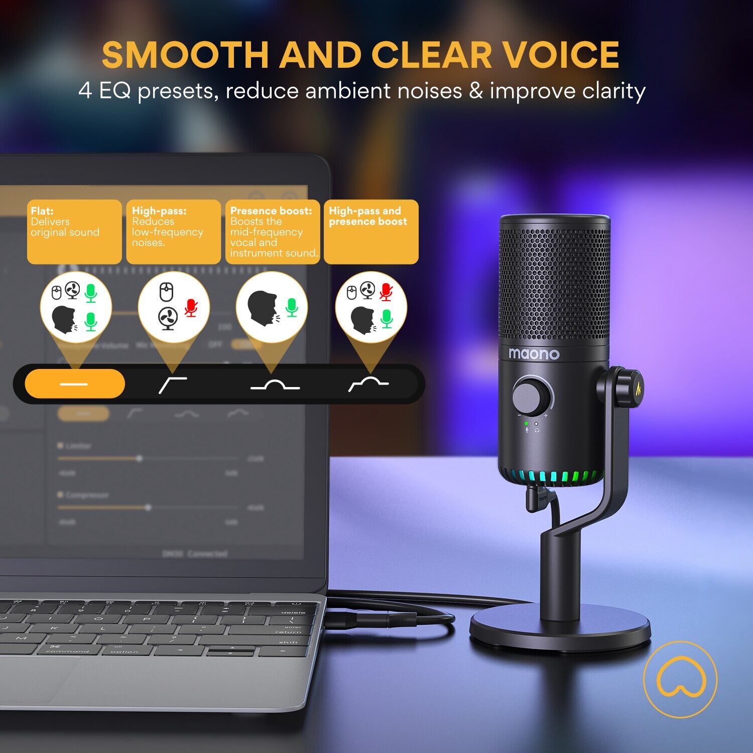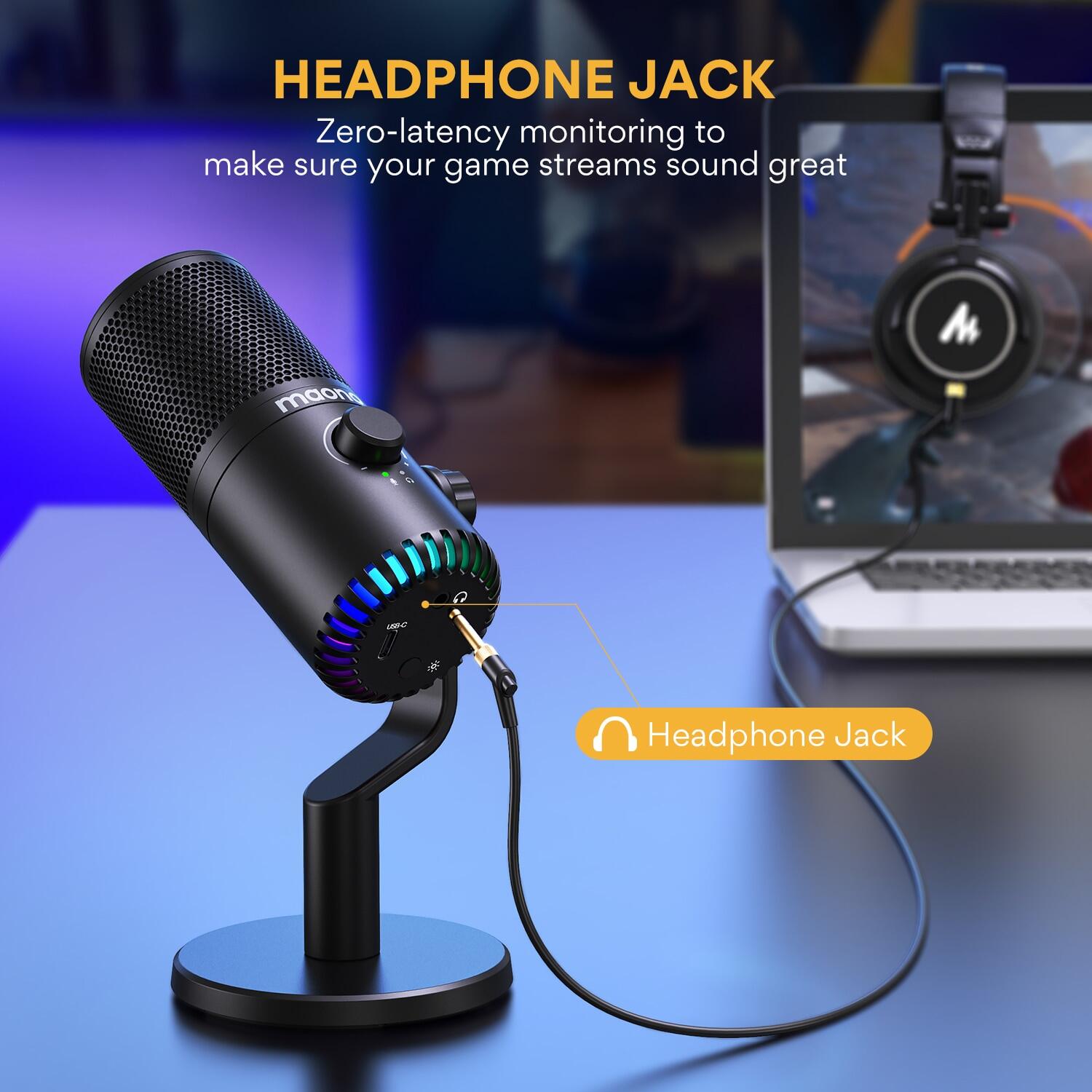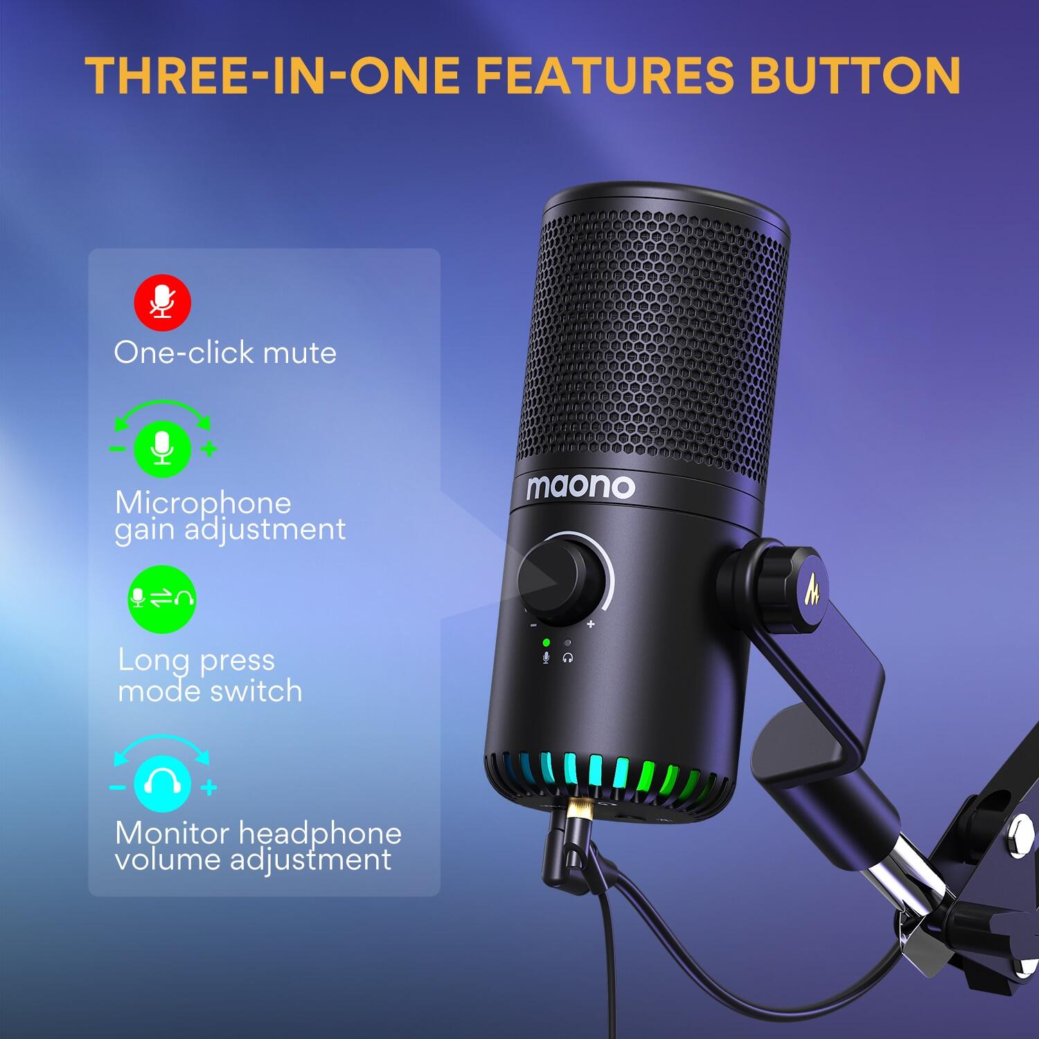 Maono USB Gaming Microphone With Type C Adapter For Phone PC Breath Light Zero Latency Monitoring For Podcasting Streaming DM30