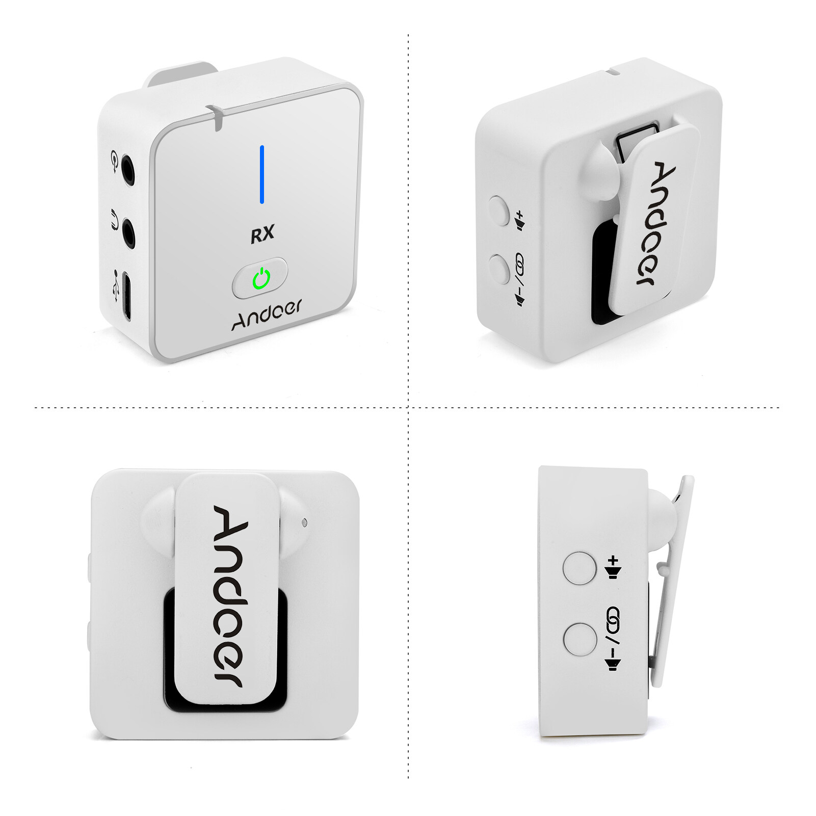 Andoer MX5 2.4G Wireless Recording Microphone System with Transmitter Receiver Clip-on Lavalier Mic 50M Effective Range Built-in BT for Type-C & 3.5mm Smartphone DSLR Camera DV Vlog Video Recording In