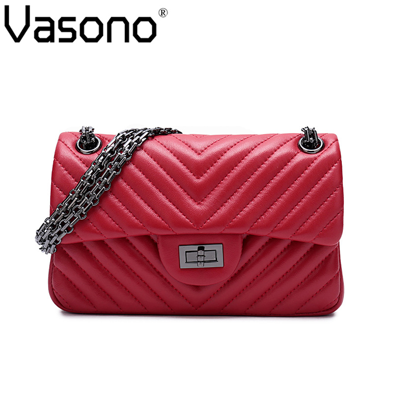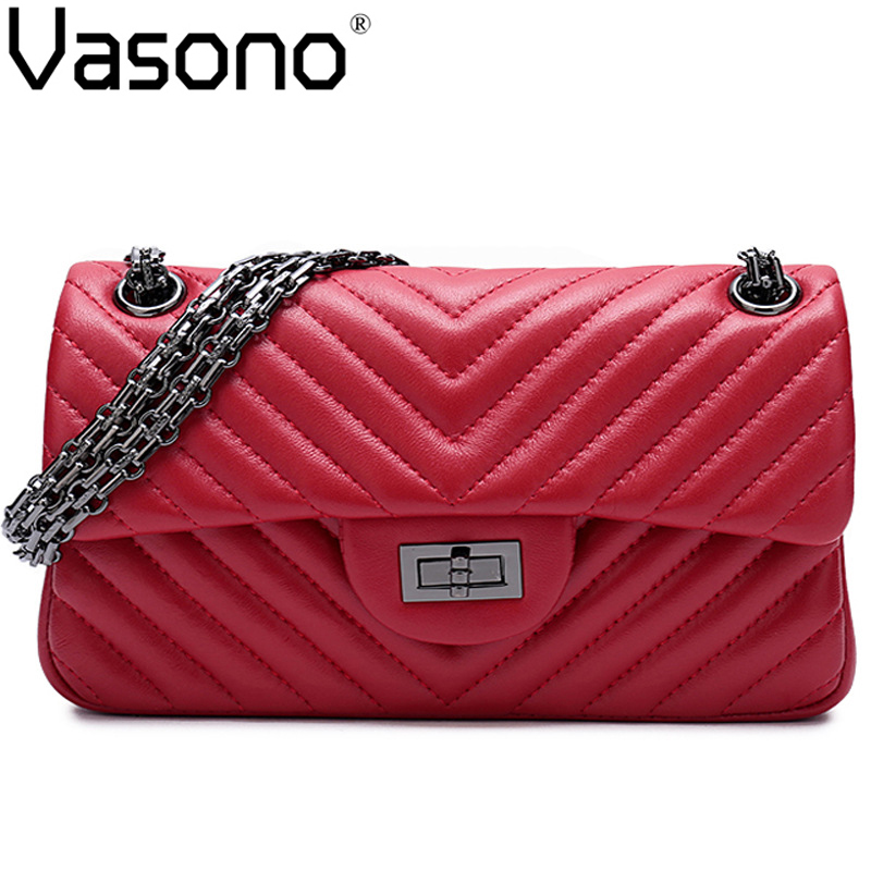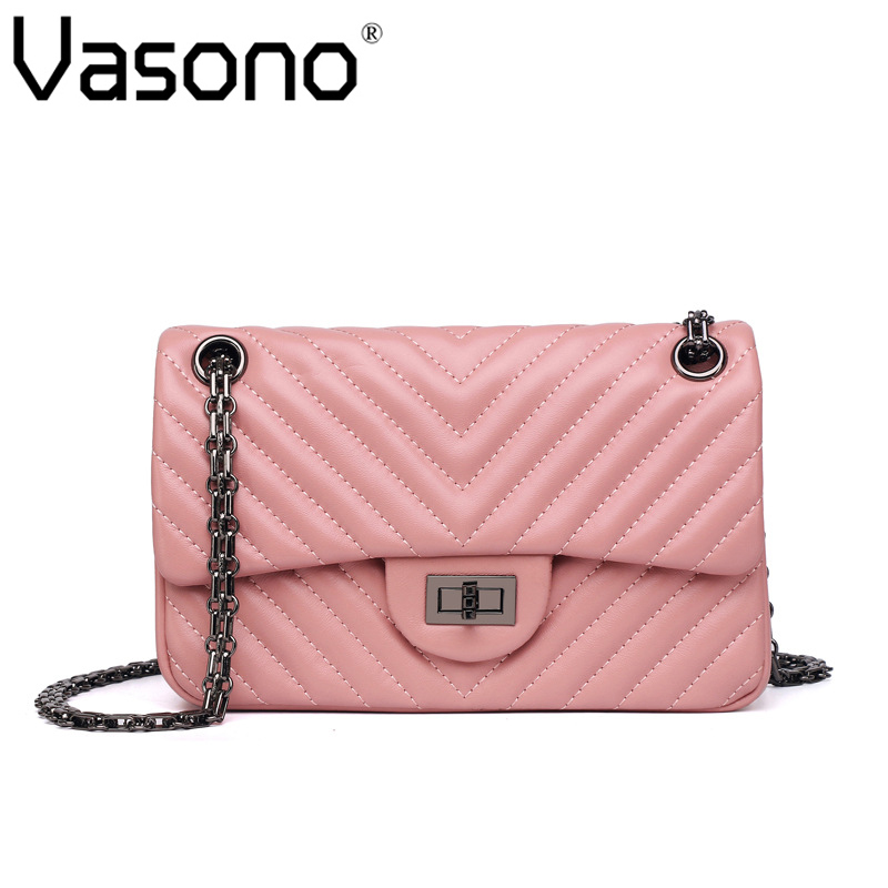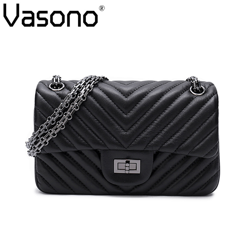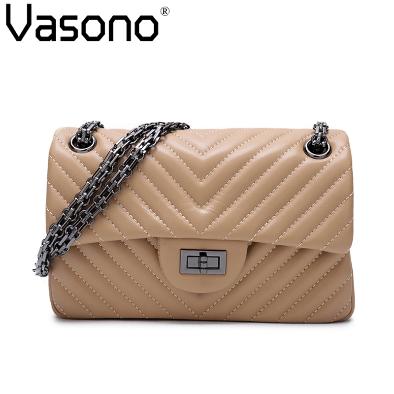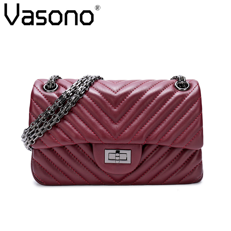 Vasono High Quality Genuine Goat Leather Women Cross-body Bag Lady Single Shoulder Bag