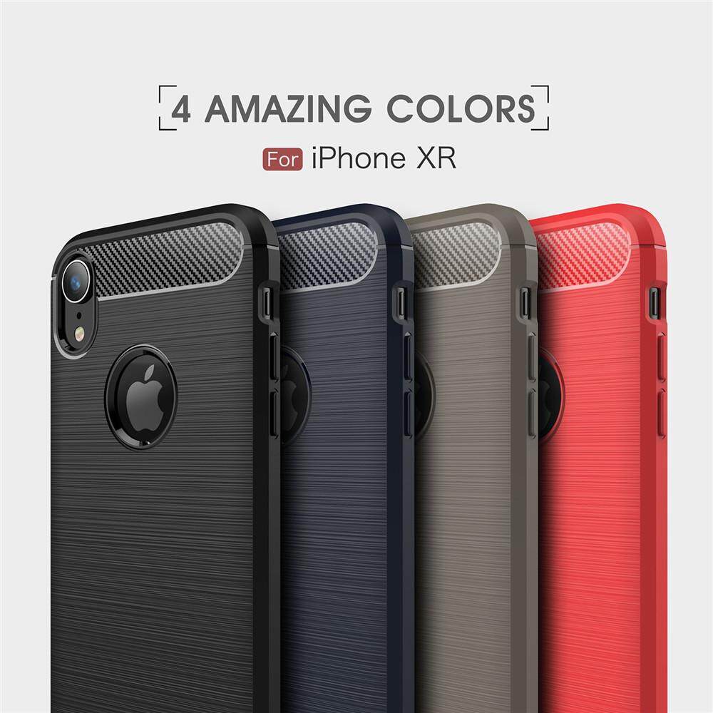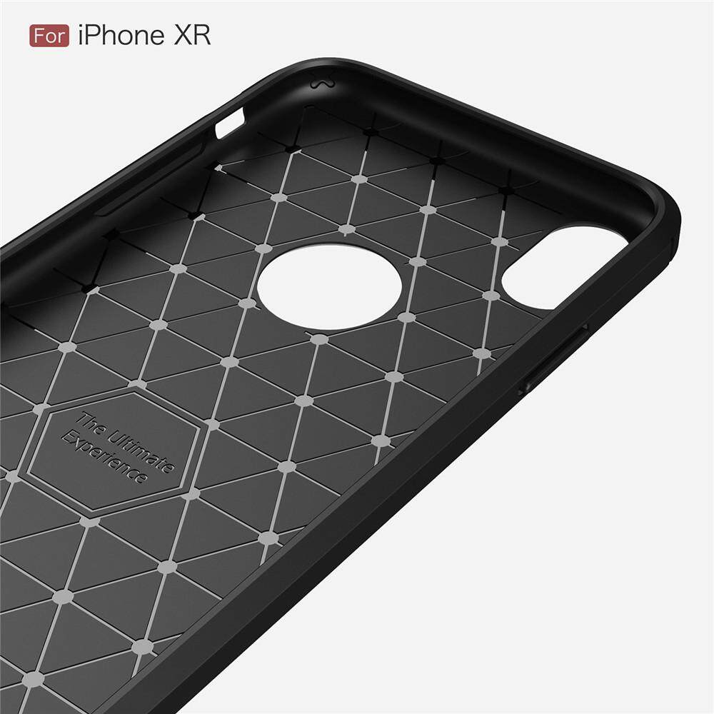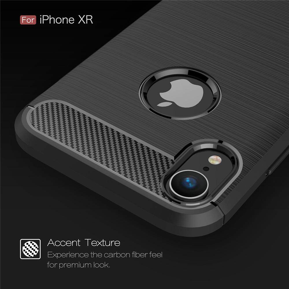 For iPhone XR Phone Case, Silicone Protection Shock Absorption Cover and Carbon Fiber Design Casing