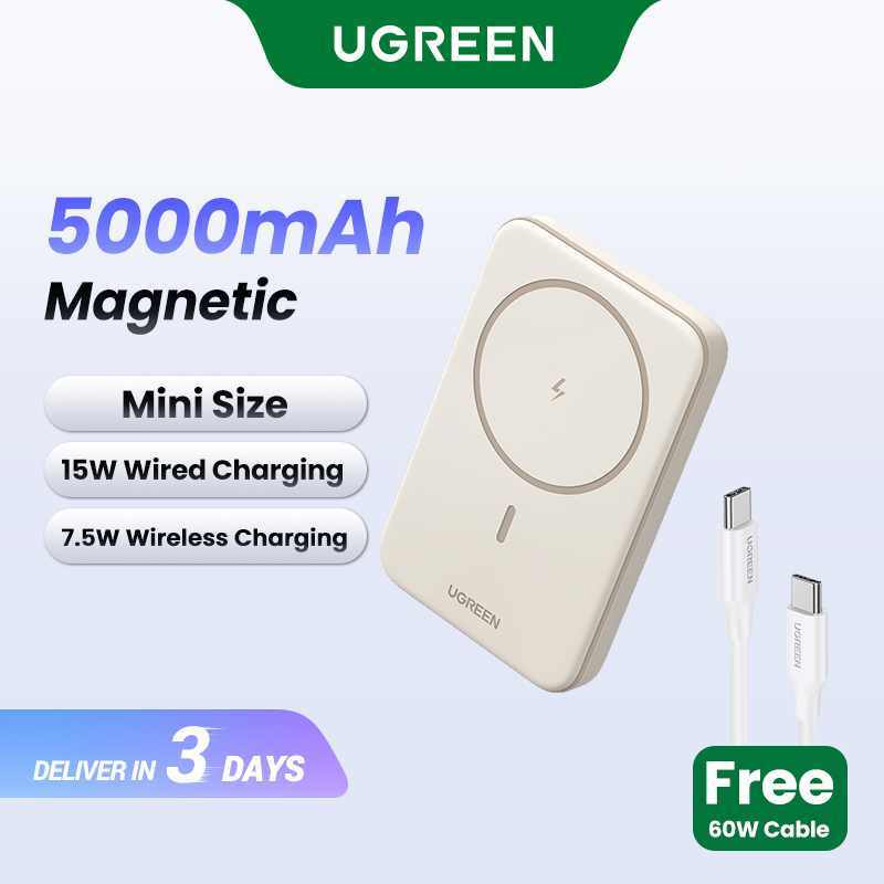 UGREEN 5000mAh/10000mAh PD 20W Powerbank USB Type C Magnetic Wireless Charging Power Bank Portable Charger Compatible for iPhone 16 15 Pro Max iPhone 16 15 Plus Samsung S24 Ultra S23 Pixel Huawei Hono