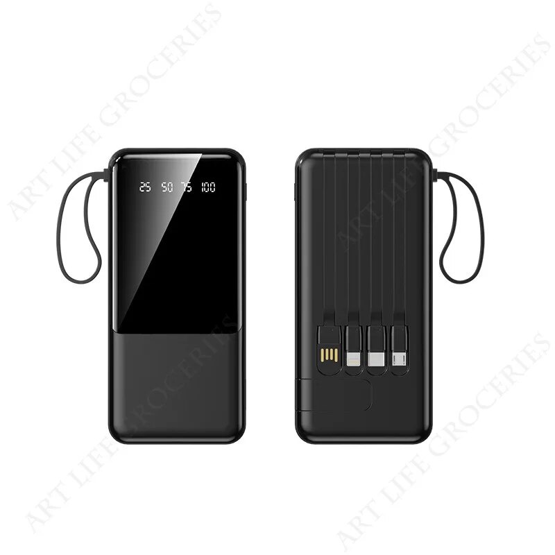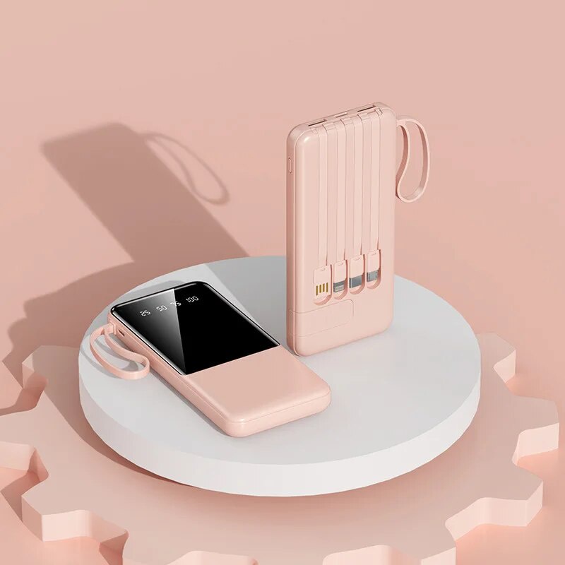 Portable Power Bank 20000mAh Fast Charging External Battery Charger Powerbank For iPhone Xiaomi Built in Cables