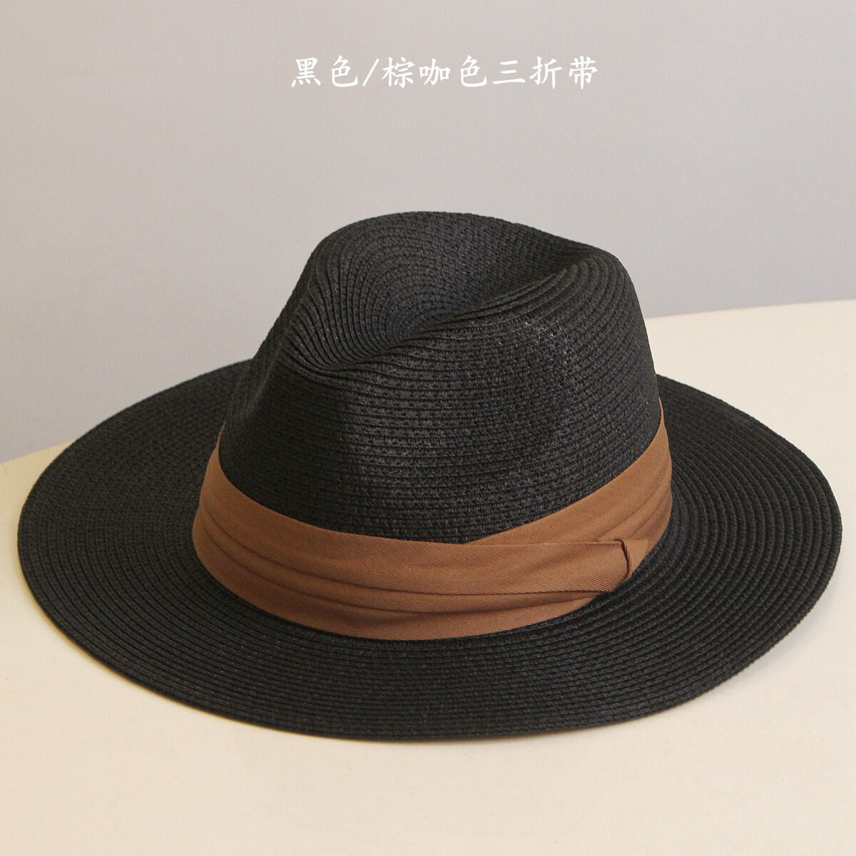 Summer Foldable Black and White Flat Wide Brim Male and Female Parent-Child Straw Hat Panama Top Hat Sun Hat Couple Beach Hat