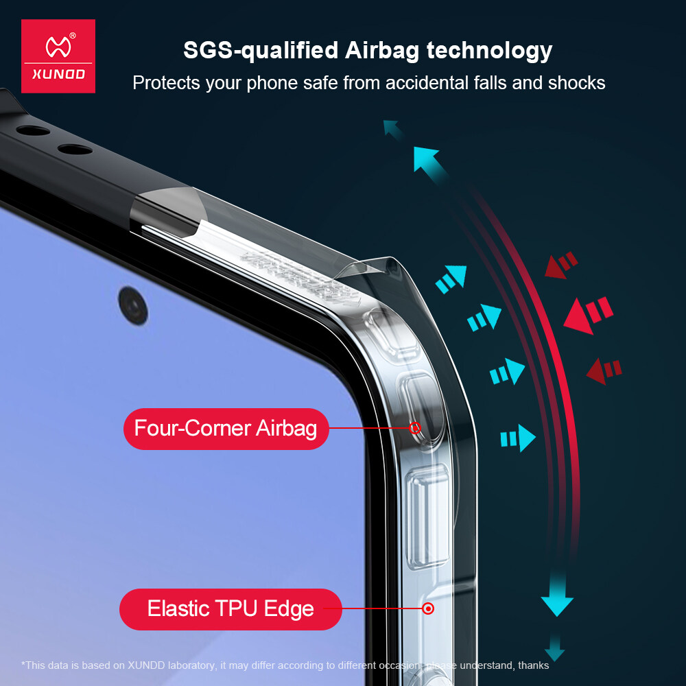 • protects the outer edges of your phone, protecting it from accidental drops and shocks. SGS-approved built-in airbag technology protects against falls