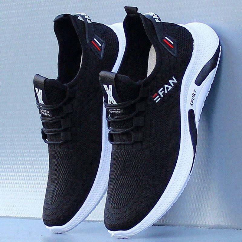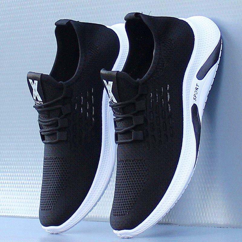 Breathable Sports Shoes for Men Spring Summer Knitted Mesh Sneakers Korean Trend Anti-Odor Running Shoes Non-Slip Casual Footwear