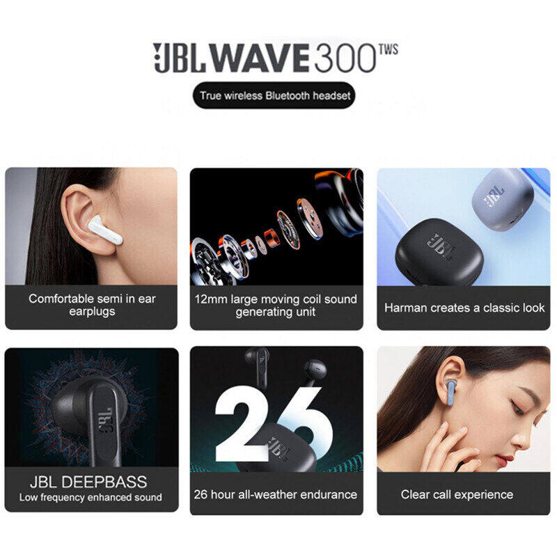 For JBLˉWave 300 TWS True Wireless In-Ear Bluetooth Headphones - Wireless Earbuds with Charging Case and Integrated Microphone