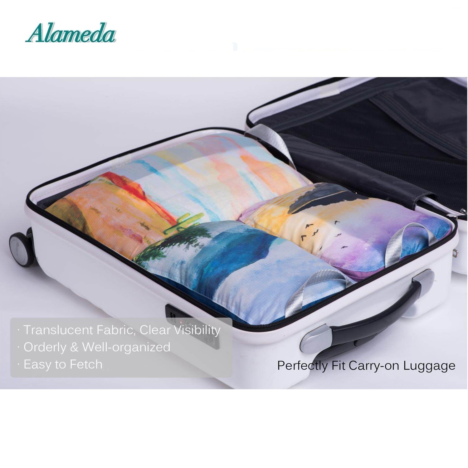 Compression Packing Cube Set for Hand Luggage 3 Pieces Set Travel Compression Bags Travel Organizer with Laundry Bagfor Luggage and Backpack(landscape A )