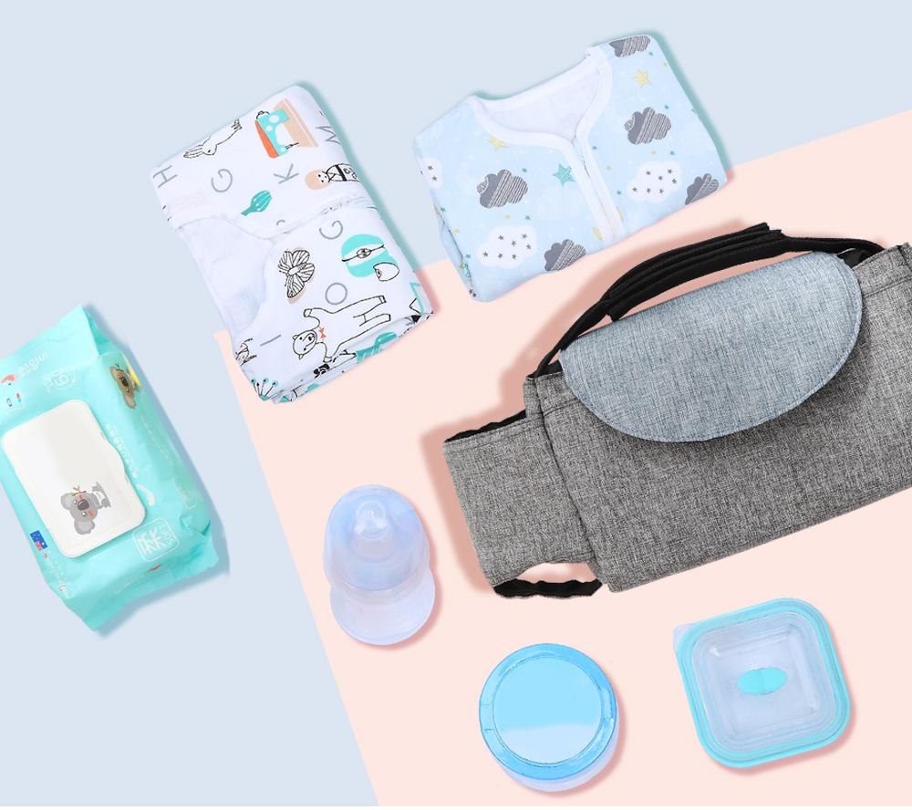 You need baby water bottle,milk bottle,diapers,baby wipes,etc.