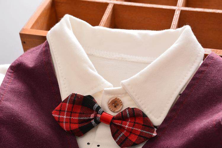 DIIMUU Toddler Baby Boy Clothing Gentlemen Suits Kids Children Boys Clothes Wedding Party Red Bow Tie British Style Set Fit 1-5Y