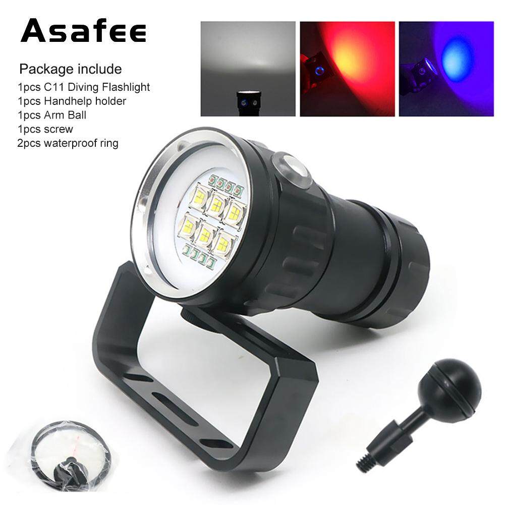 Asafee 20000LM XM-L2 LED Diving Flashlight XHP90 LED Photography Video light underwater 100m waterproof Tactical torch Lamp white red purple light
