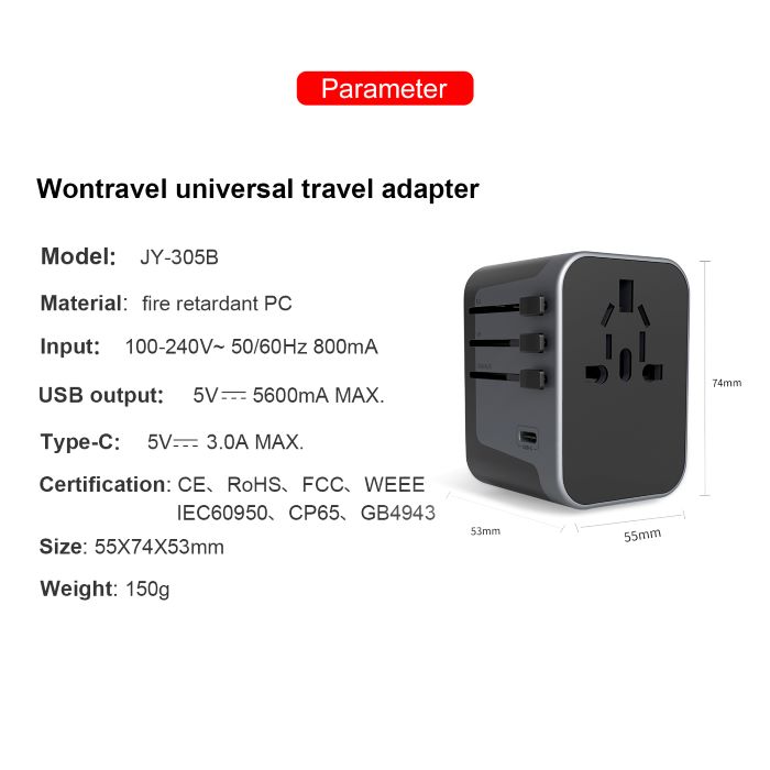 [SG Seller] Universal Travel Adapter All in One International Worldwide Wall Power Travel Adaptor with 4 USB Ports + 1 Type C Port Fast Wall Charger Plug (Black/ Black with Dark Grey/ Black with Silve