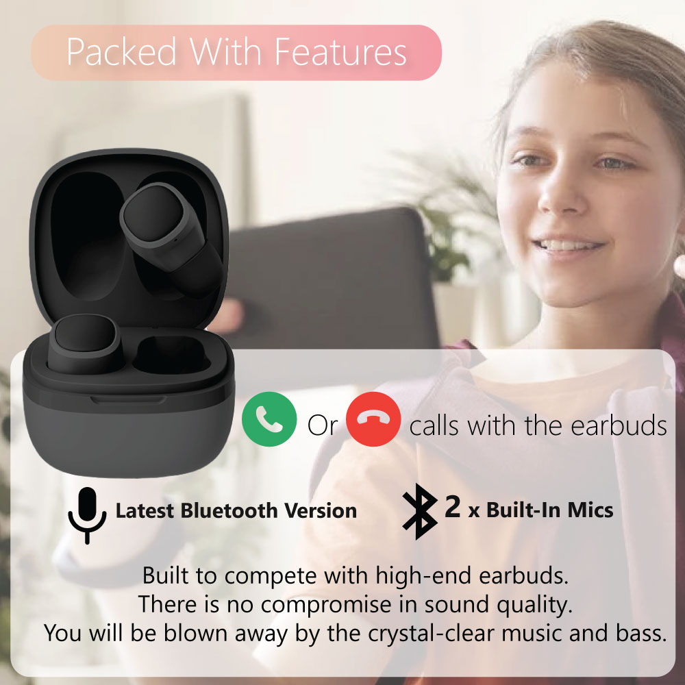 Blackdot Pro Wireless Earbuds can both answer phone calls. They can be used in dual or separate modes. Easy to share the same music/movies with friends.