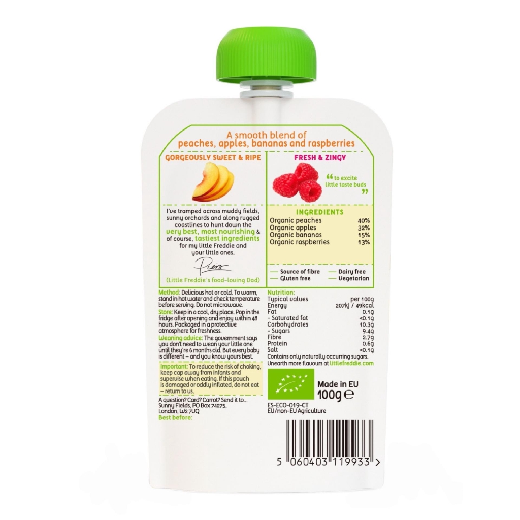 (Bundle of 3 ) Little Freddie Organic Vibrant Peaches and Raspberries 100g x 3
