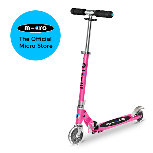 The Micro Sprite can fold up and is easy to carry. This versatile aluminium scooter has been a popular companion for years amongst kids going to school and also commuters. This series now has LED wheels at the front and rear giving this classic Micro Scooter that extra something.
