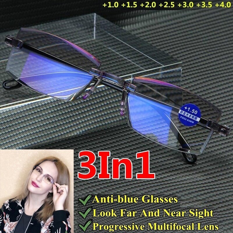 Anti-Blue Light Bifocal Reading Glasses Both Far and Near Progressive Multi-Focus Reading Glasses Frameless Trimming Flat High Quality Eyeglasses PTQ