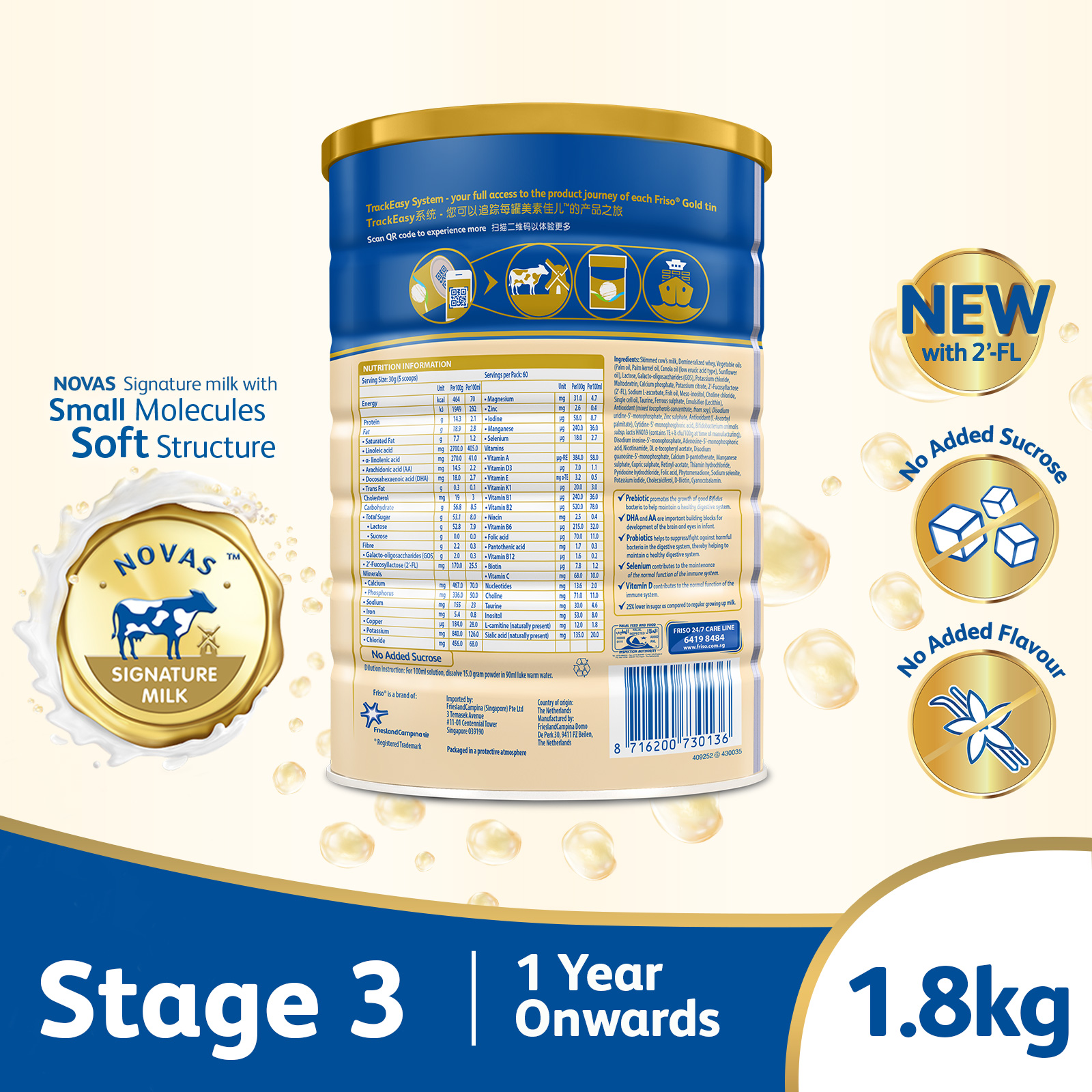 • Made from high-quality NOVAS Signature Milk that is sourced directly from our own farms in the Netherlands, crafted by our Holland Dairy Science expertise.