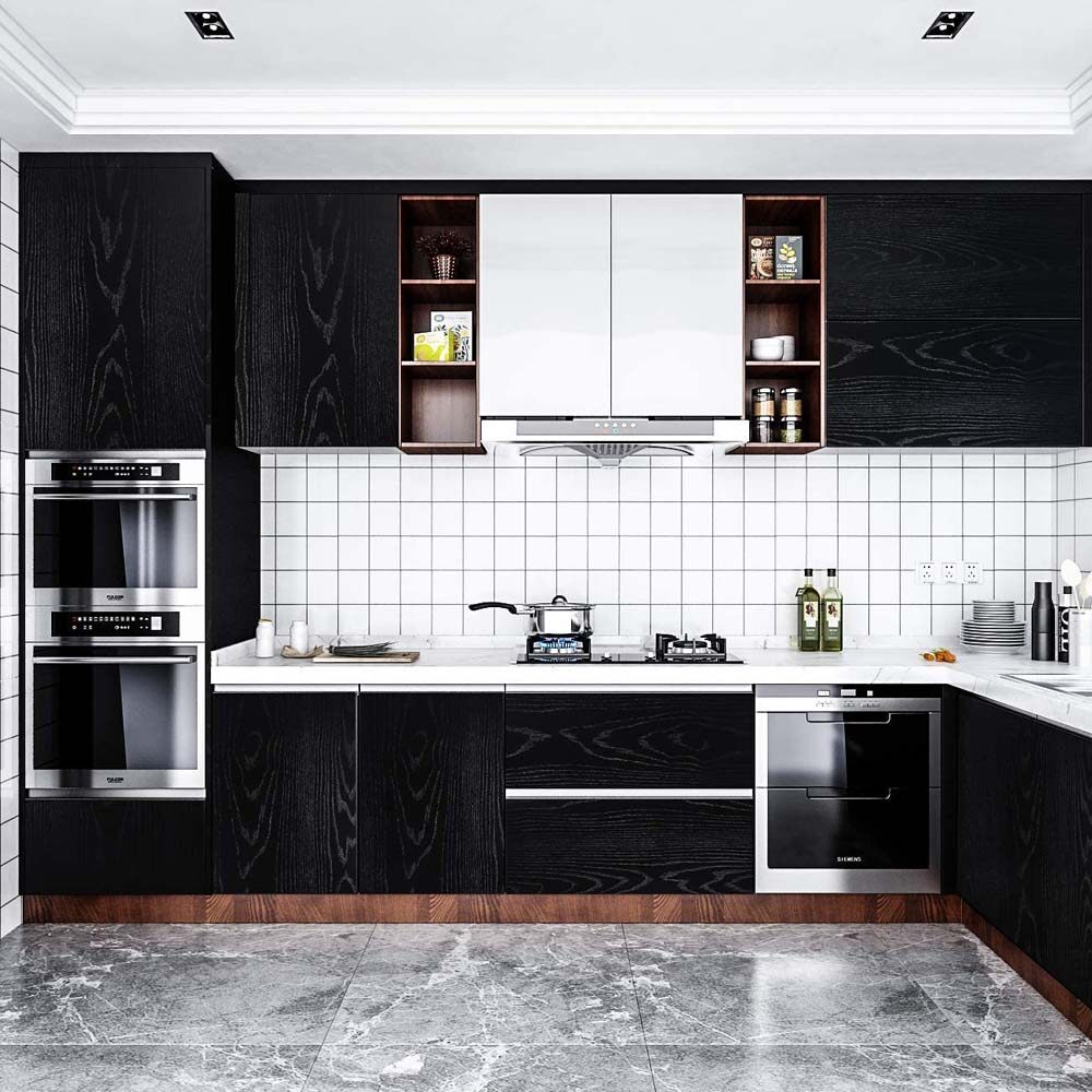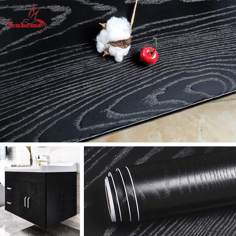 Yenhome 60×300cm Black Wood Grain Wallpaper Self-adhesive Wall Sticker Waterproof Oilproof Contact Paper Door Sticker For Background Bedroom Bathroom Cabinet