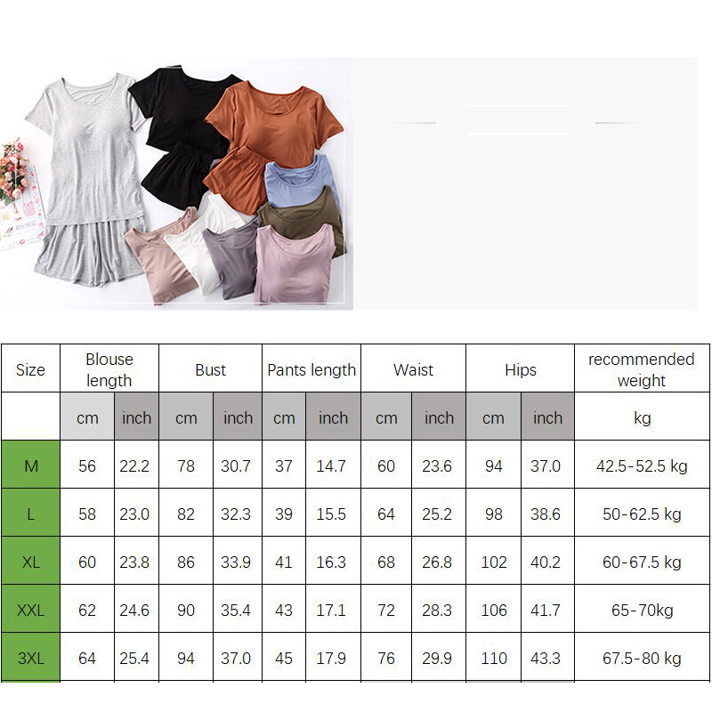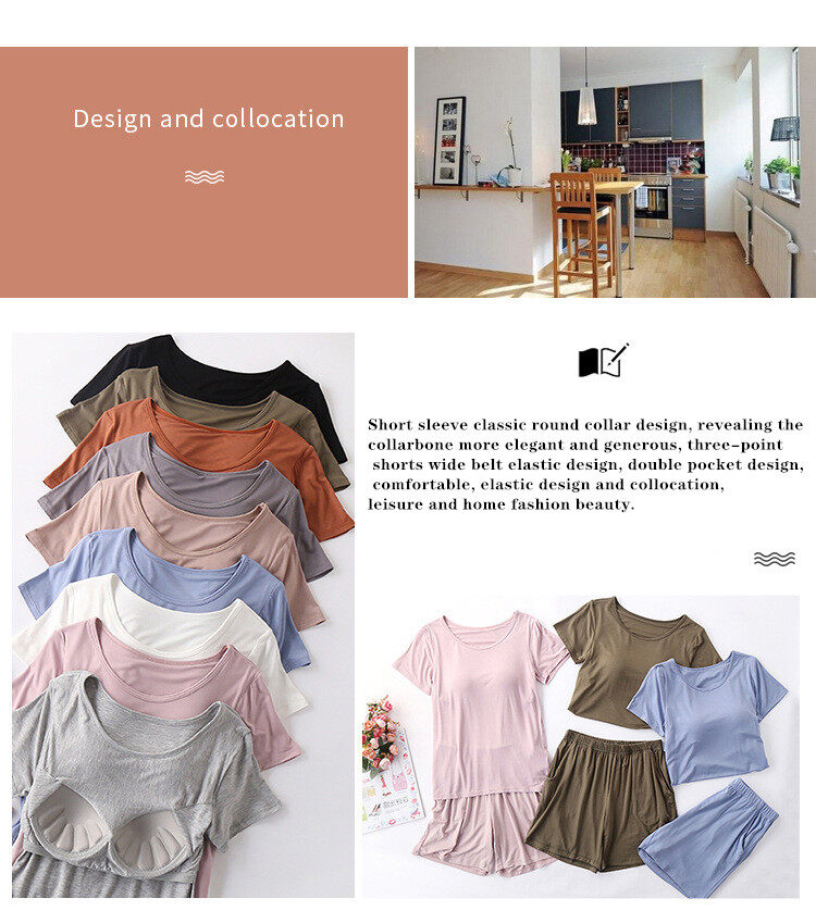 1 Set Summer Modal Short-sleeved Shorts Women's With Chest Pad Tops Thin Home Wear Pajamas Female Two piece set With Pockets Cotton Casual Gym Yoga Elastic Waist Short Plus Size Loose Comfortable brea