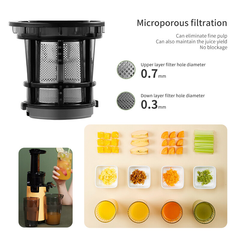 【Maximum Nutrion Value】 - slow masticating juicer with 130W motor rotates at 65 RPM which is slower and powerful than other slow juicers on the market