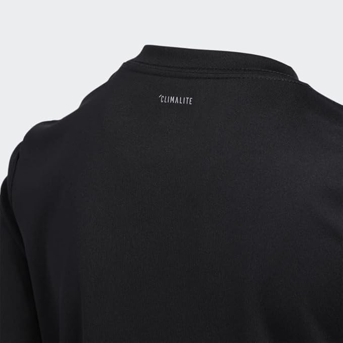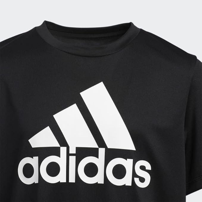 FABRIC: The AEROREADY crew neck tee is crafted from high-quality, breathable fabric designed to wick away moisture, keeping your child dry and comfortable even during intense physical activities. Its built to last, withstanding the wear and tear of active play and frequent washing.