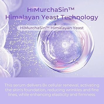 Revolutionary Anti-Aging Formula Infused with HiMurchaSin Himalayan Yeast, this serum provides intensive cellular renewal, visibly reducing wrinkles and fine lines while improving skin elasticity and firmness within one week.