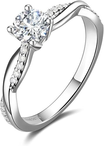 AGVANA 0.4-1.14 carat total weight. Lab-grown diamond small twist vine ring in sterling silver (0.3-1 carat center stone). Women's engagement anniversary wedding ring (D-E color, VS clarity)