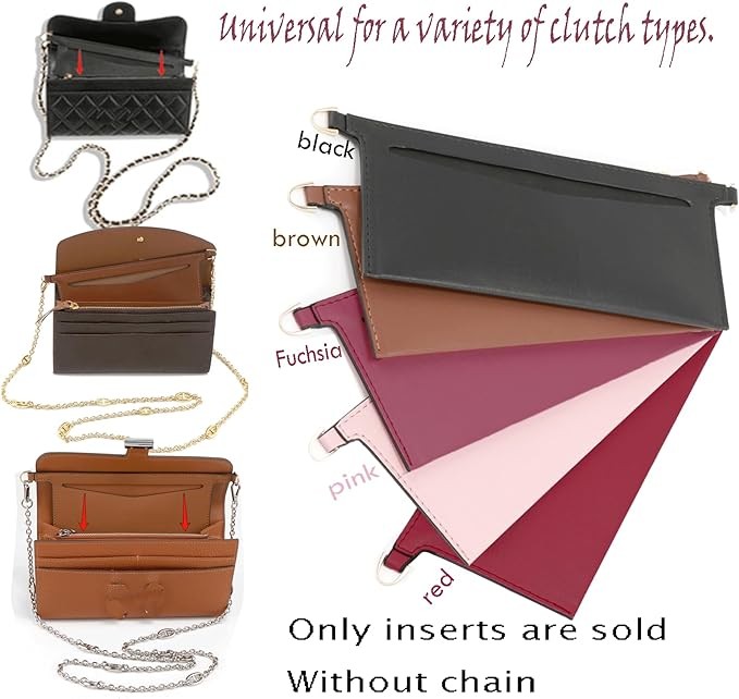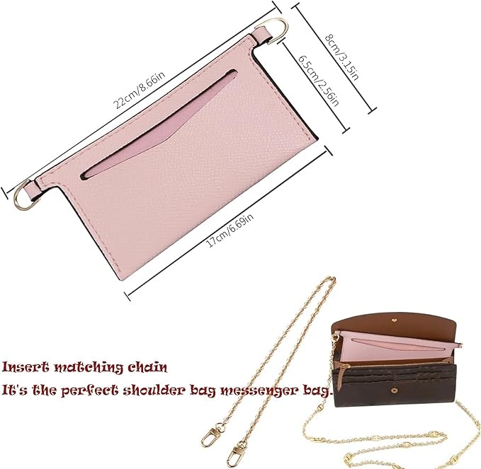 The leather accessory insert (link only) is sold with the pouch insert, without the chain. It is compatible with the classic long flap wallet and a small messenger bag.